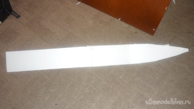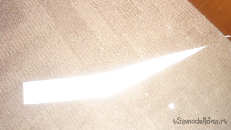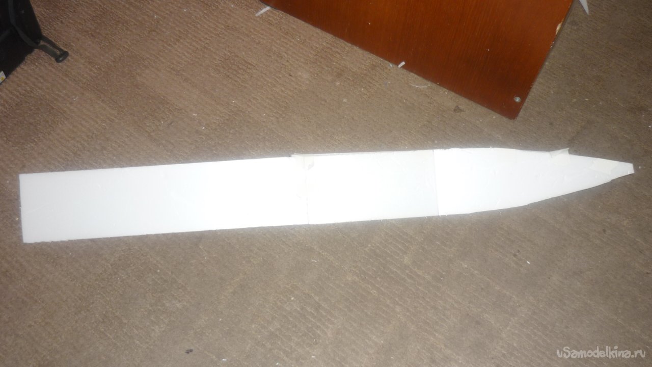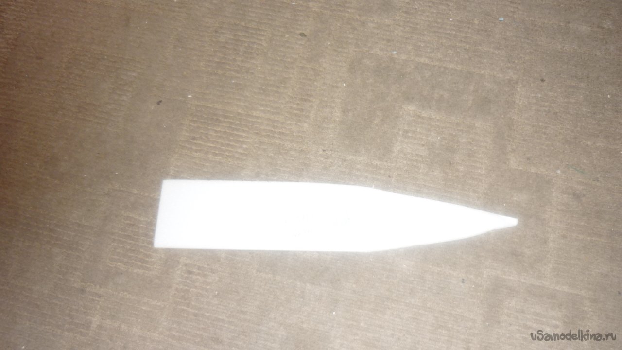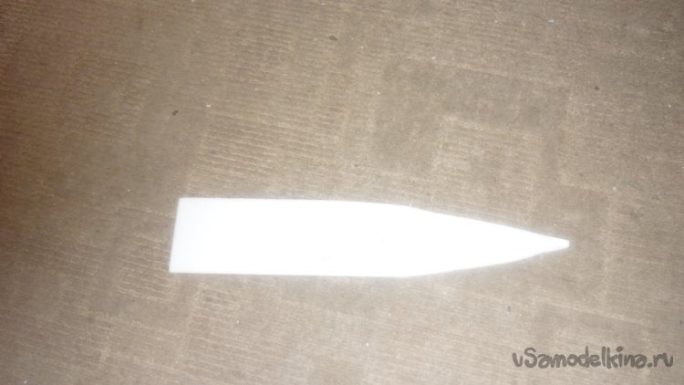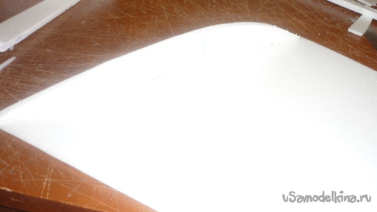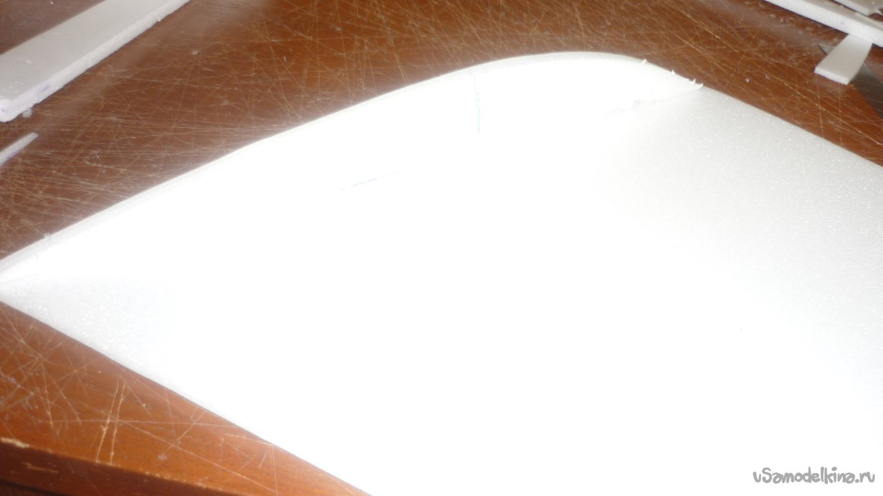 Начинаю вырезать заготовки отдельных деталей модели. Это нижняя поверхность носовой части модели.