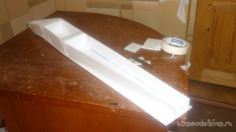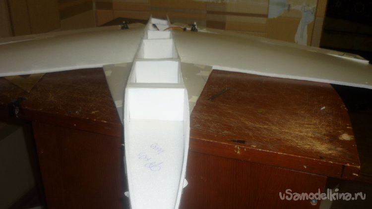 Для прочности конструкции внутри фюзеляжа вклеиваю вертикалбняе перегородки.