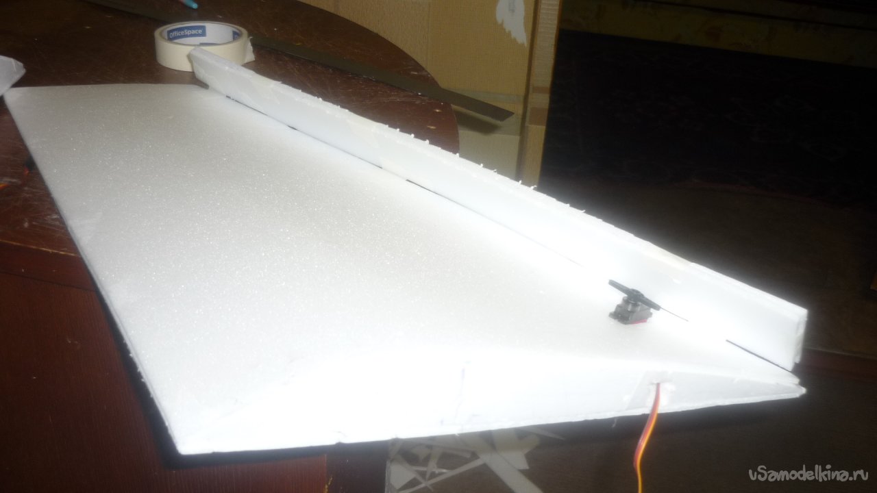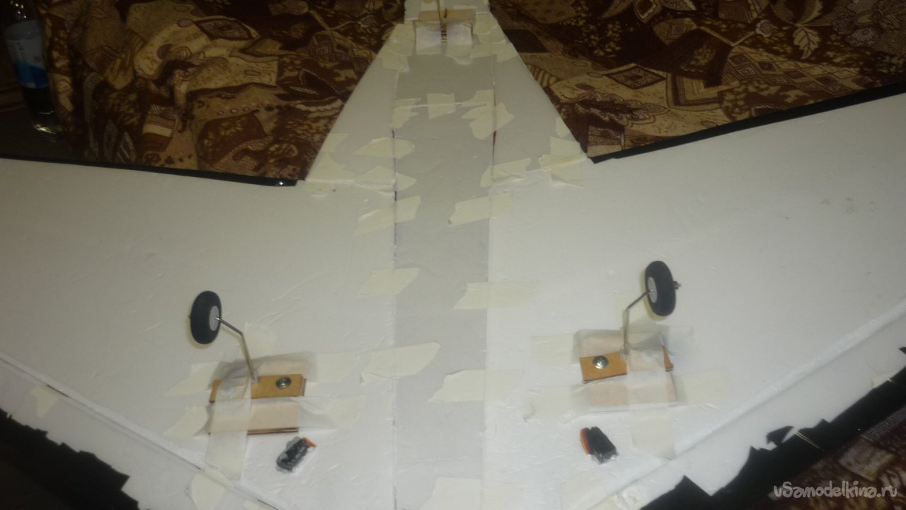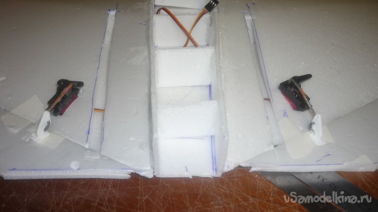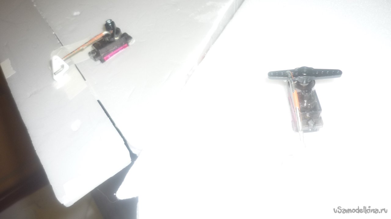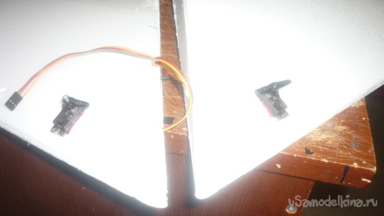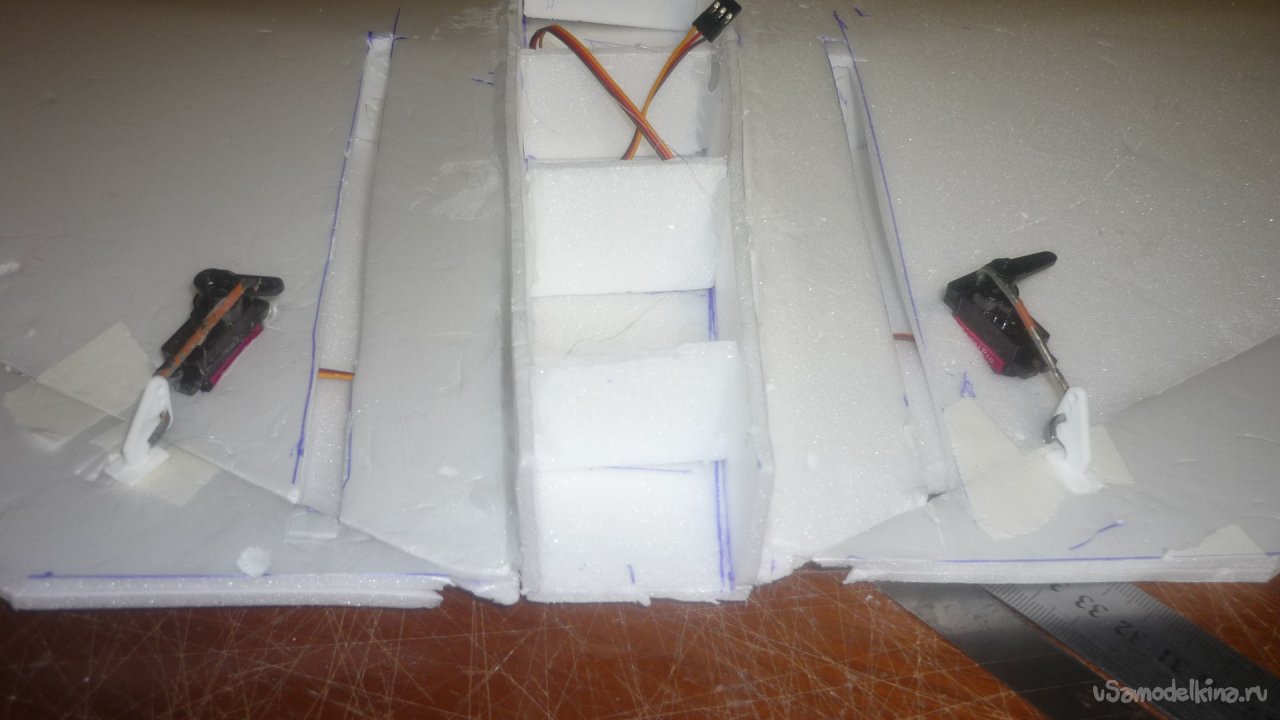 Размечаю места установки сервомашинок управления элевонами и монтирую их.