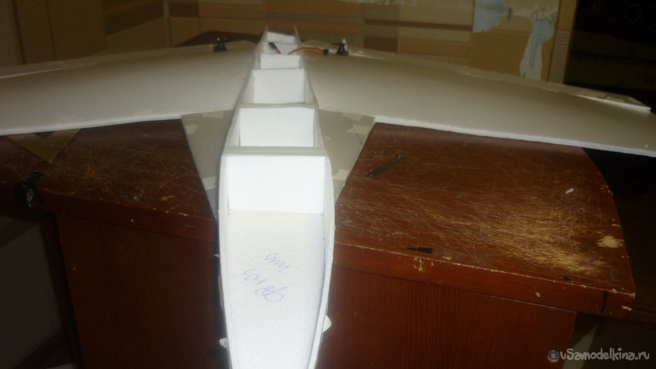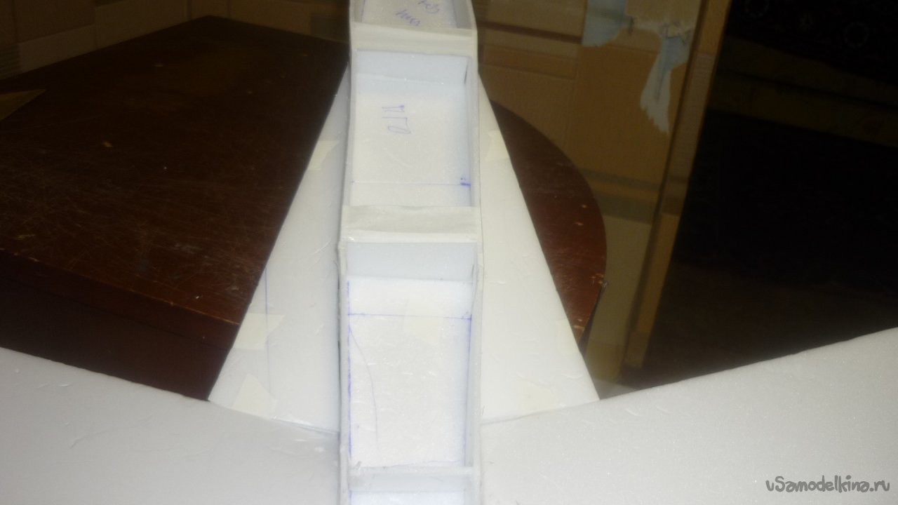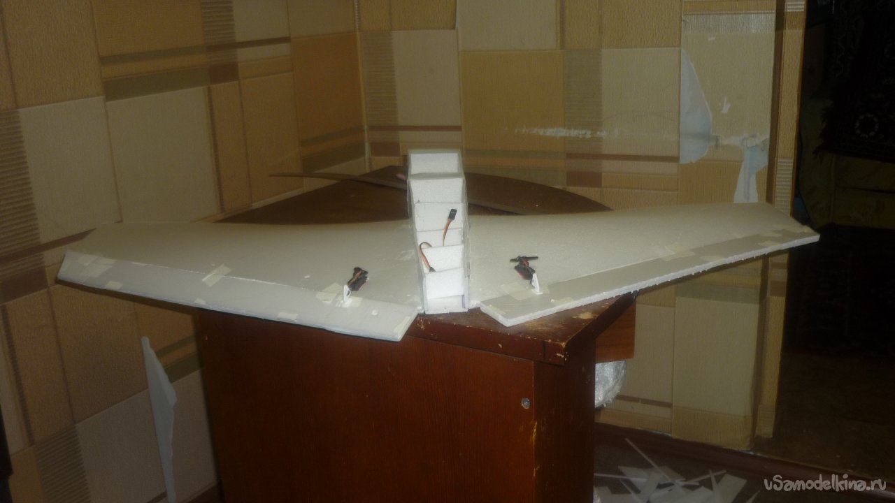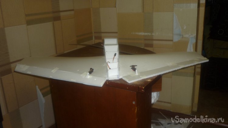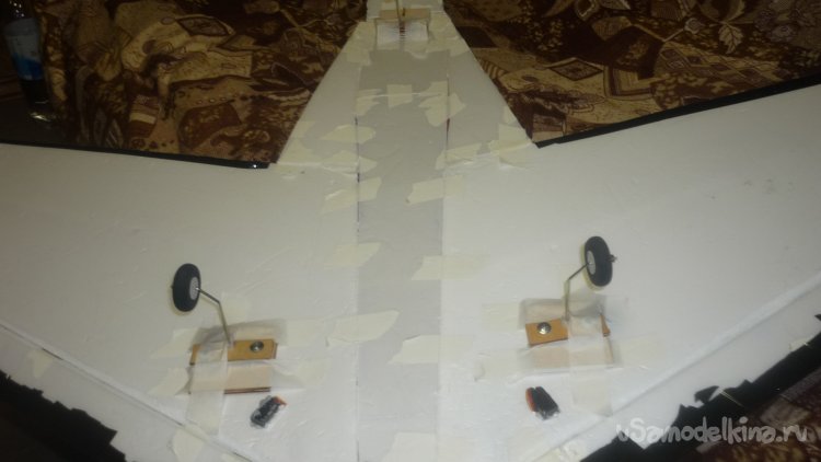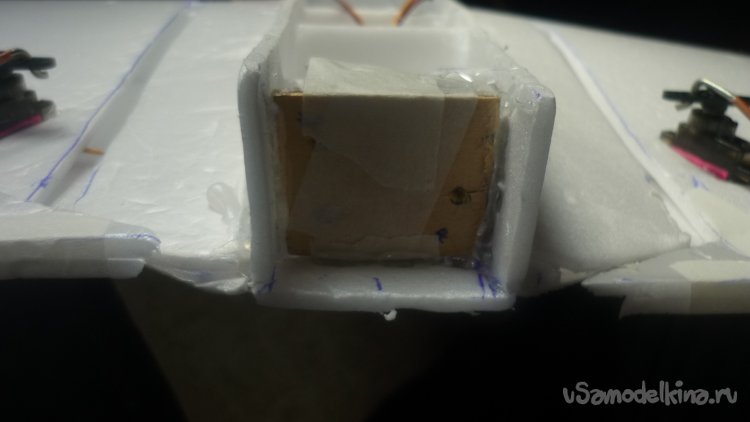 Размечаю места установки сервомашинок управления элевонами и монтирую их.