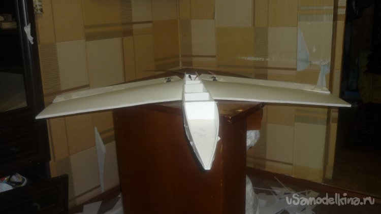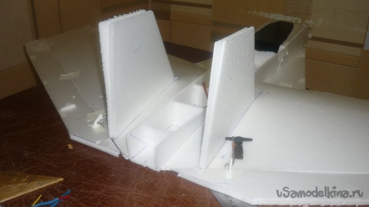 Вклеиваю кабанчики, устанавливаю тяеи управления элевонами.