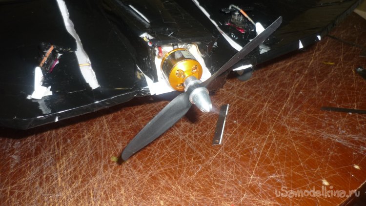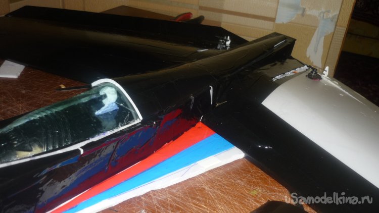 Вклеиваю мотораму в хвостовой части фюзеляжа.