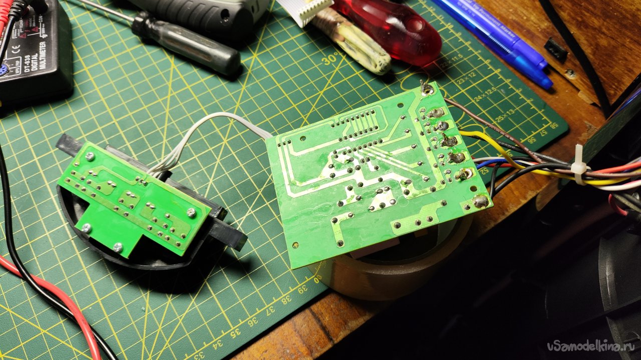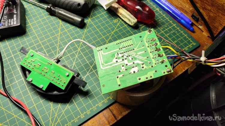 Снял плату. Саморезов в вентиляторе много, для откручивания сначала пользовался обычной отверткой, потом взял аккумуляторную отвертку, о которой рассказывал ранее. Работать ей не очень, шумная, маломощная. Но с откручиванием саморезов вполне справляется. Особенно понравилось выкручивать прокручивающийся винт.