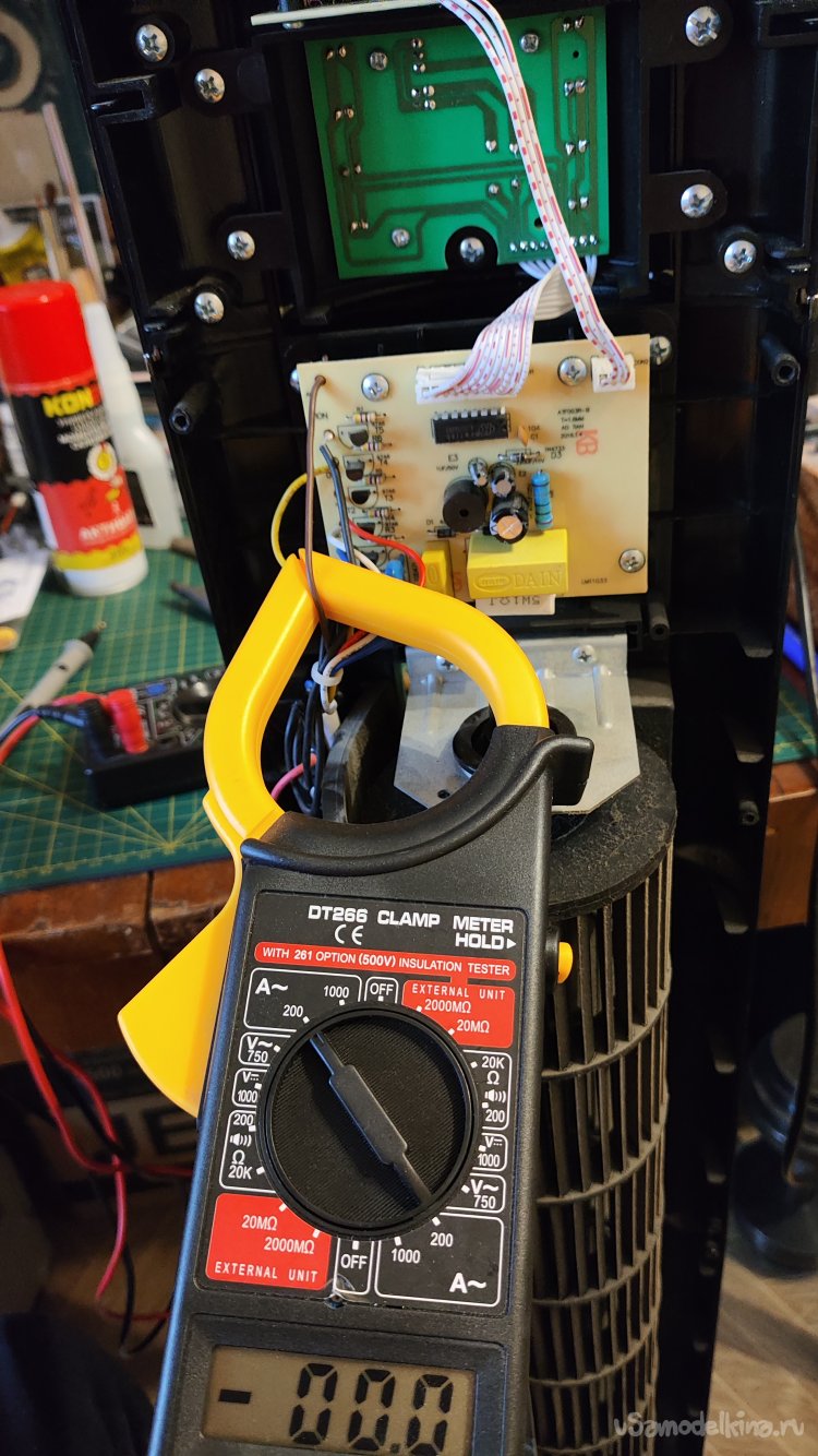 Собираю все на место, снова проверка. Вентилятор прекрасно работает, все режимы переключаются. Пульт не дали, проверить работу дистанционно управления нечем.