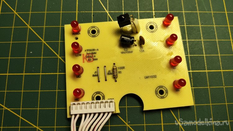 На плате ничего волшебного нет. Светодиоды исправные, замыкания по питанию инфракрасного приемника нет. Значит дело в питании основной платы.