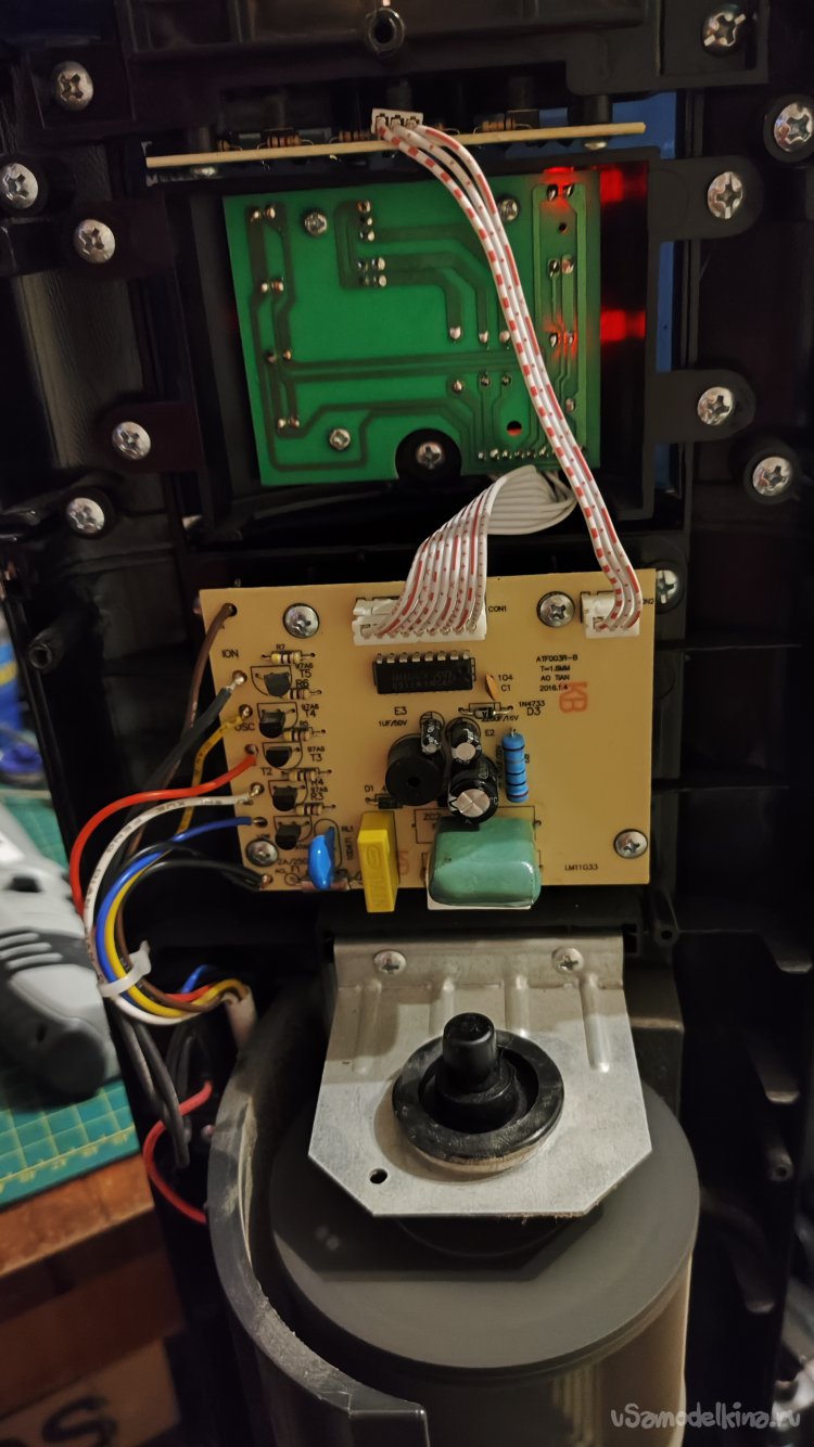 Выше расположена плата индикации, над ней плата с кнопками управления режимами.