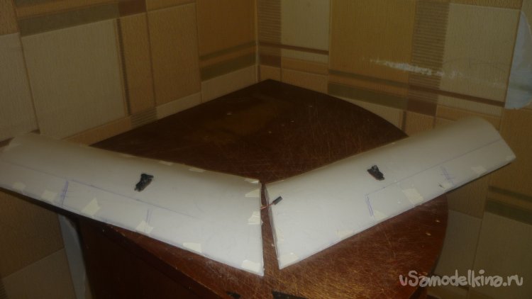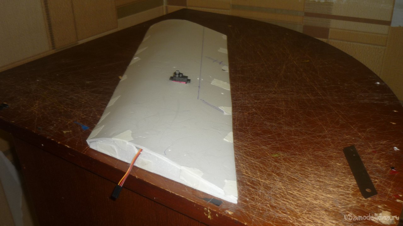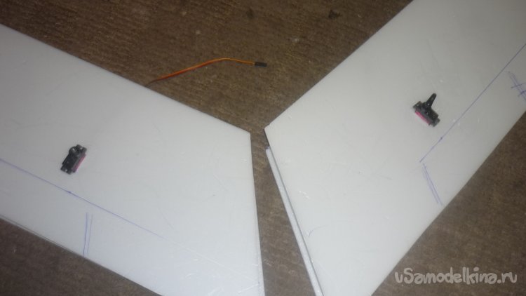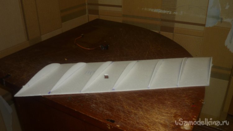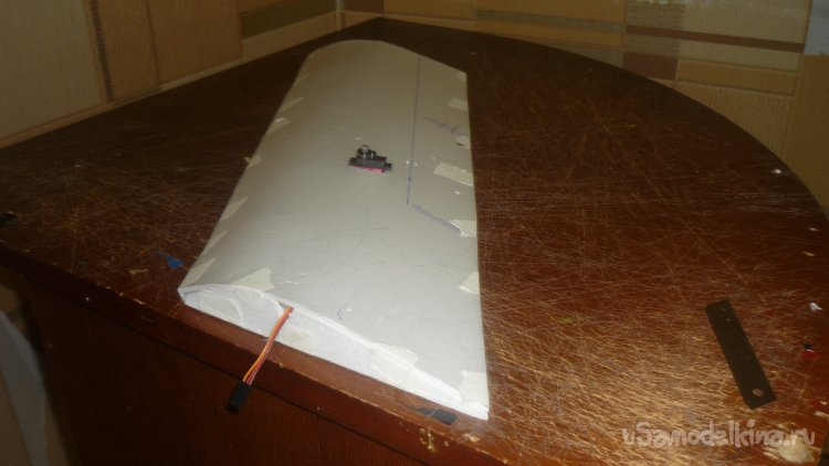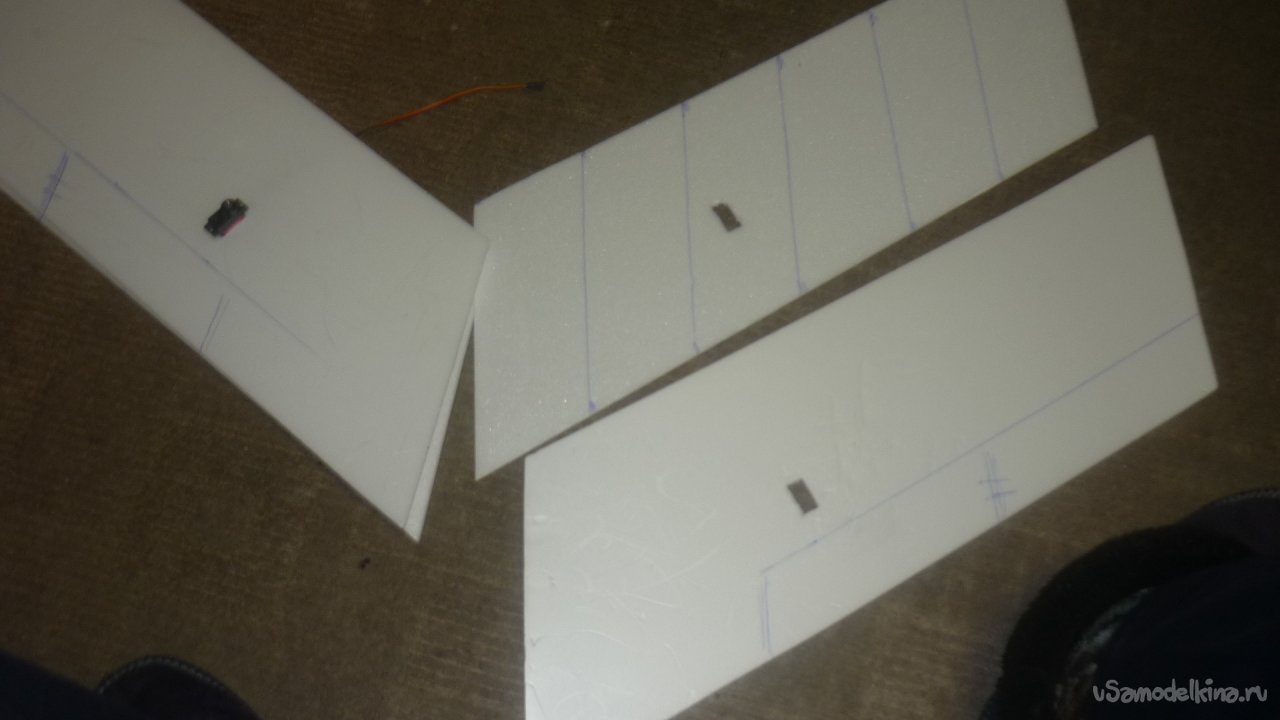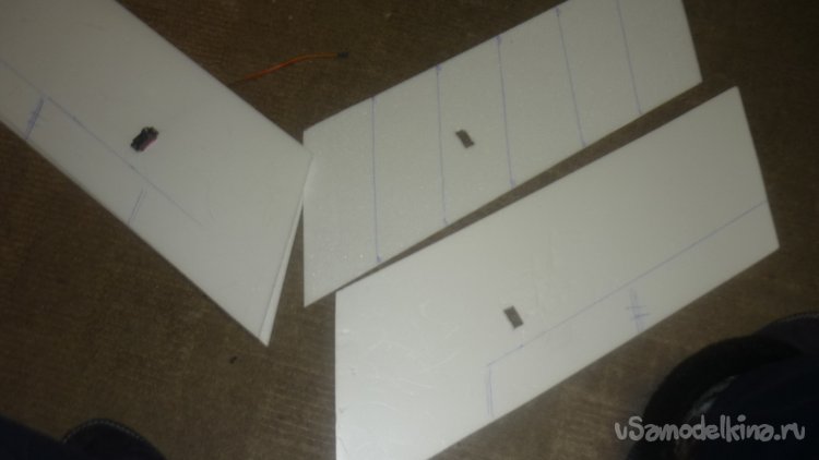 Размечаю места установки сервомашинок управления элеронами. примеряю.