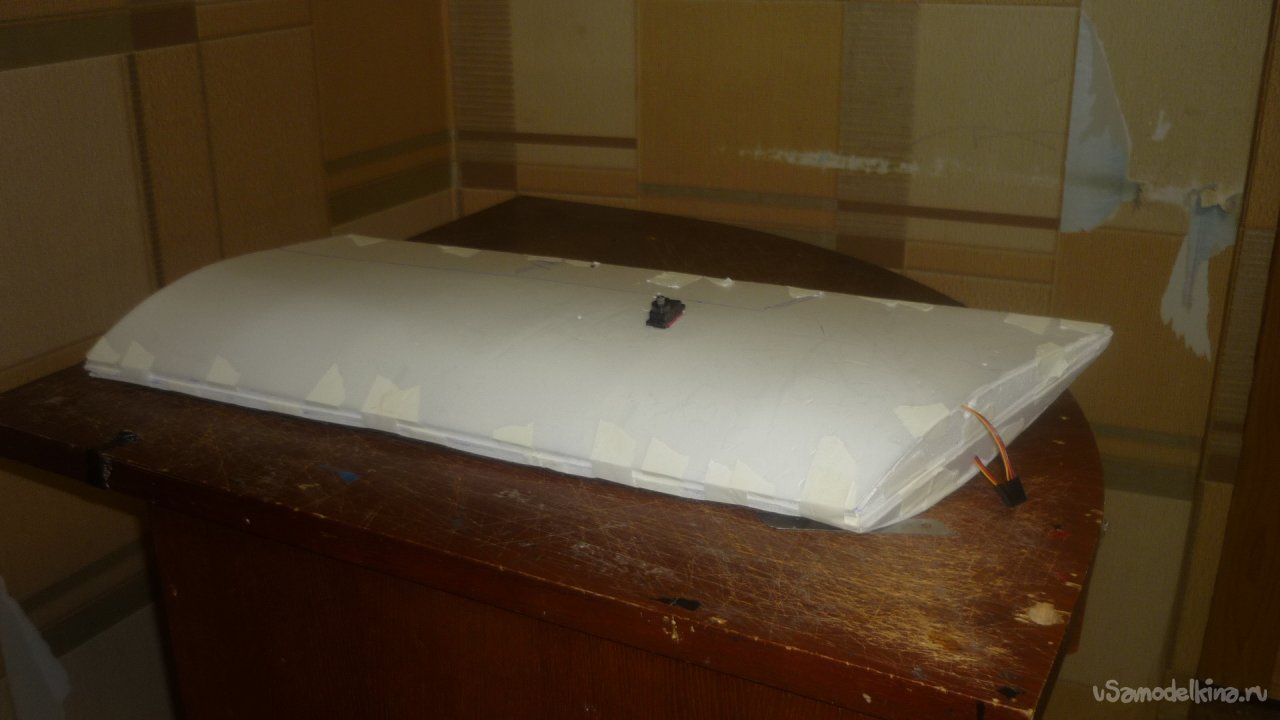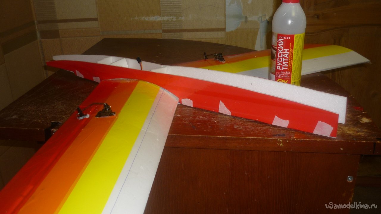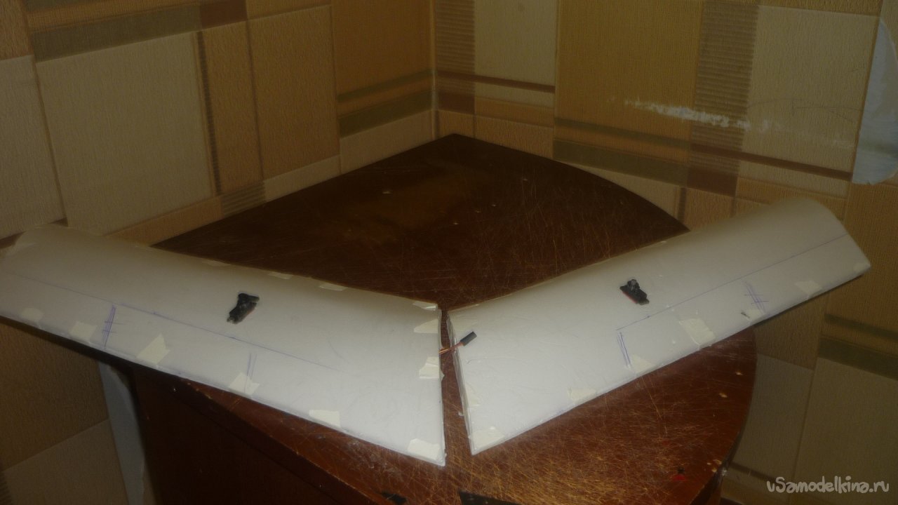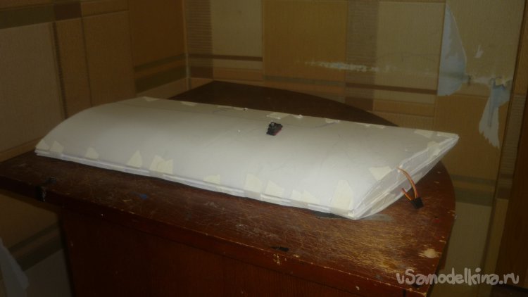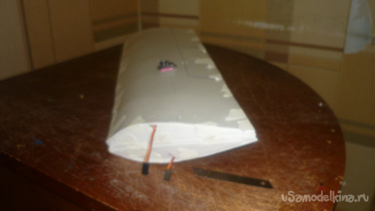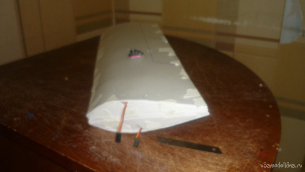 Отрезал элероны от основных крыльев и навесил их на бумажный, малярный скотч.