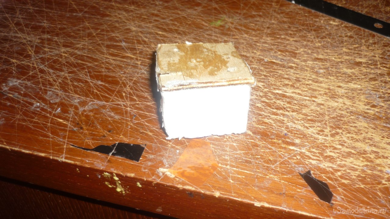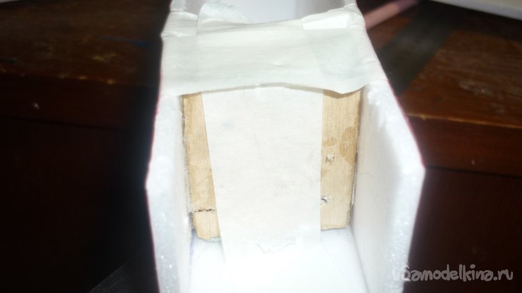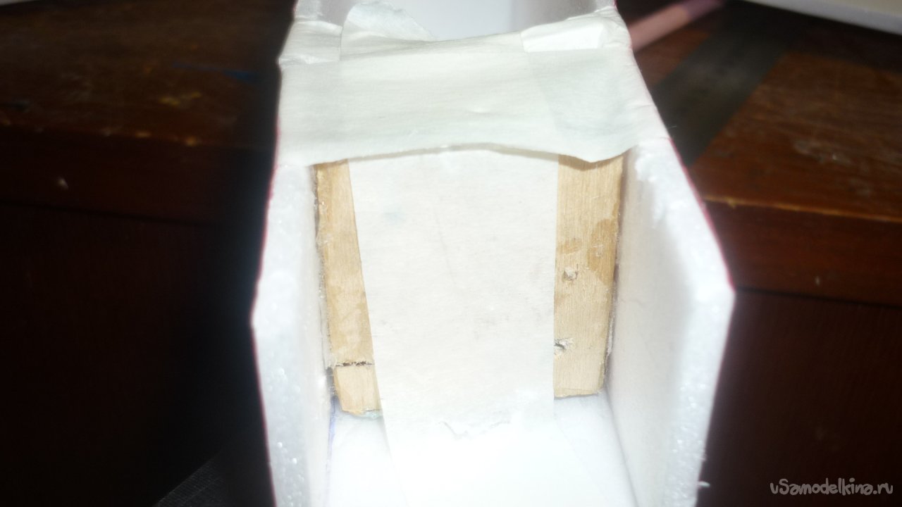 Вырезал из утеплителя кусочек и приклеил на него 3 мм фанерую Получилась моторама.