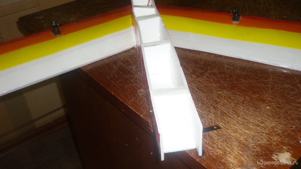 Монтирую крылья на нижнюю стенку фюзеляжа.