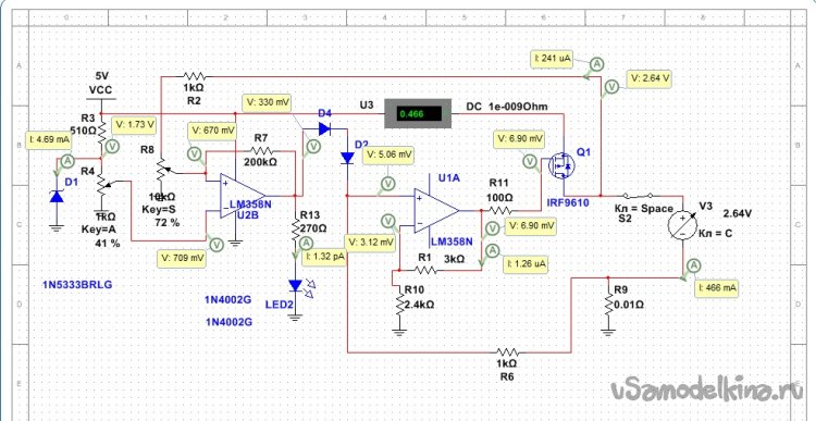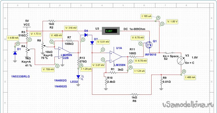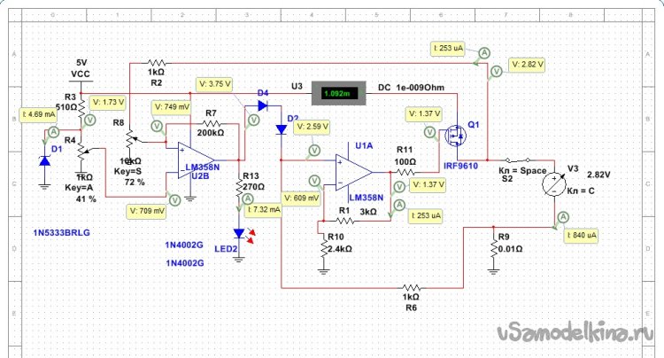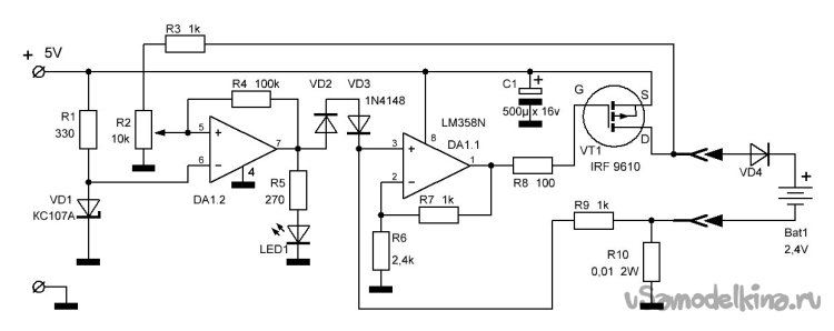 Соберем схему ЗУ, основанную на известном сдвоенном операционном усилителе (ОУ) LM358N.