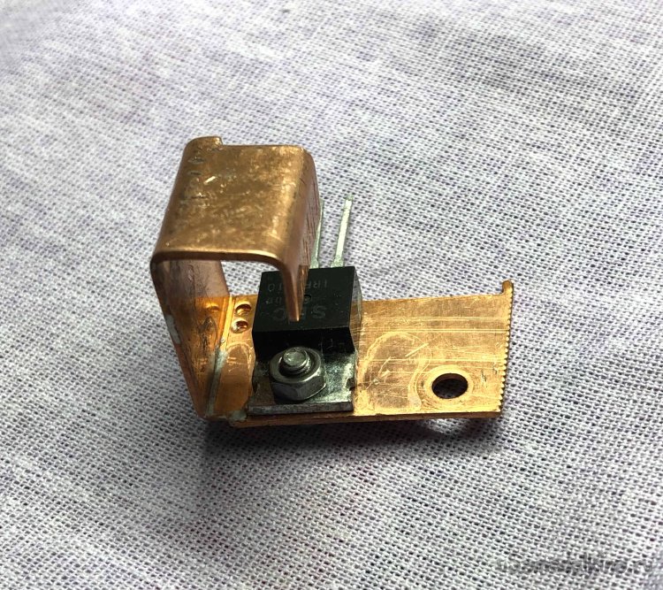 Полевой транзистор при увеличении зарядного тока начинает заметно нагреваться, поэтому установим его на медный радиатор. Для уменьшения влияния температуры на стабильность работы ЗУ, поместим радиатор в отдельный дальний сектор подставки. Для охлаждения радиатора, снизу и в боковых стенках отсека корпуса просверлим отверстия.