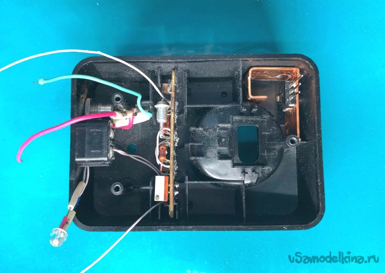 Прибор взятый для модернизации конструктивно заряжается в пассивной пластмассовой подставке. Подставка подключается к сети с помощью адаптера. Вся электрика и электроника располагается на плате в корпусе прибора.