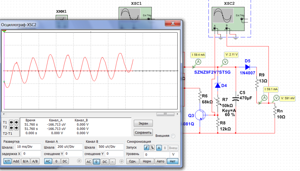 На ОУ DA1.1 выполнен узел стабилизации тока в цепи заряда аккумуляторов (Bat1), где он включен по схеме неинвертирующего усилителя.