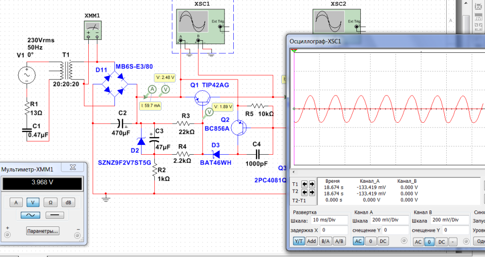 В качестве стабилизатора напряжения и термокомпенсатора применен стабистор КС107А. Номинальное напряжение стабилизации стабистора – 0,7 В при Iст = 10 мА.