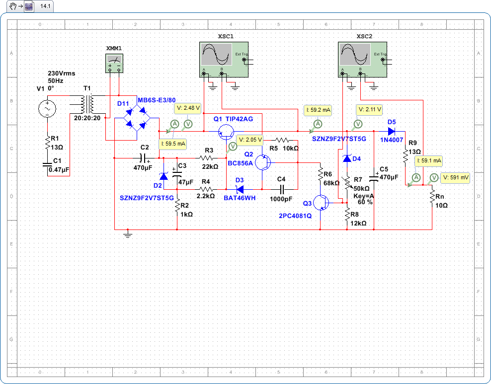 Похожая схема зарядного устройства была обнаружена в инете, несколько доработана, в программе Multisim отработаны режимы работы устройства, номиналы комплектующих, диапазон настройки момента отключения устройства при заряде аккумулятора, величину гистерезиса для включения ЗУ на разряженном аккумуляторе.