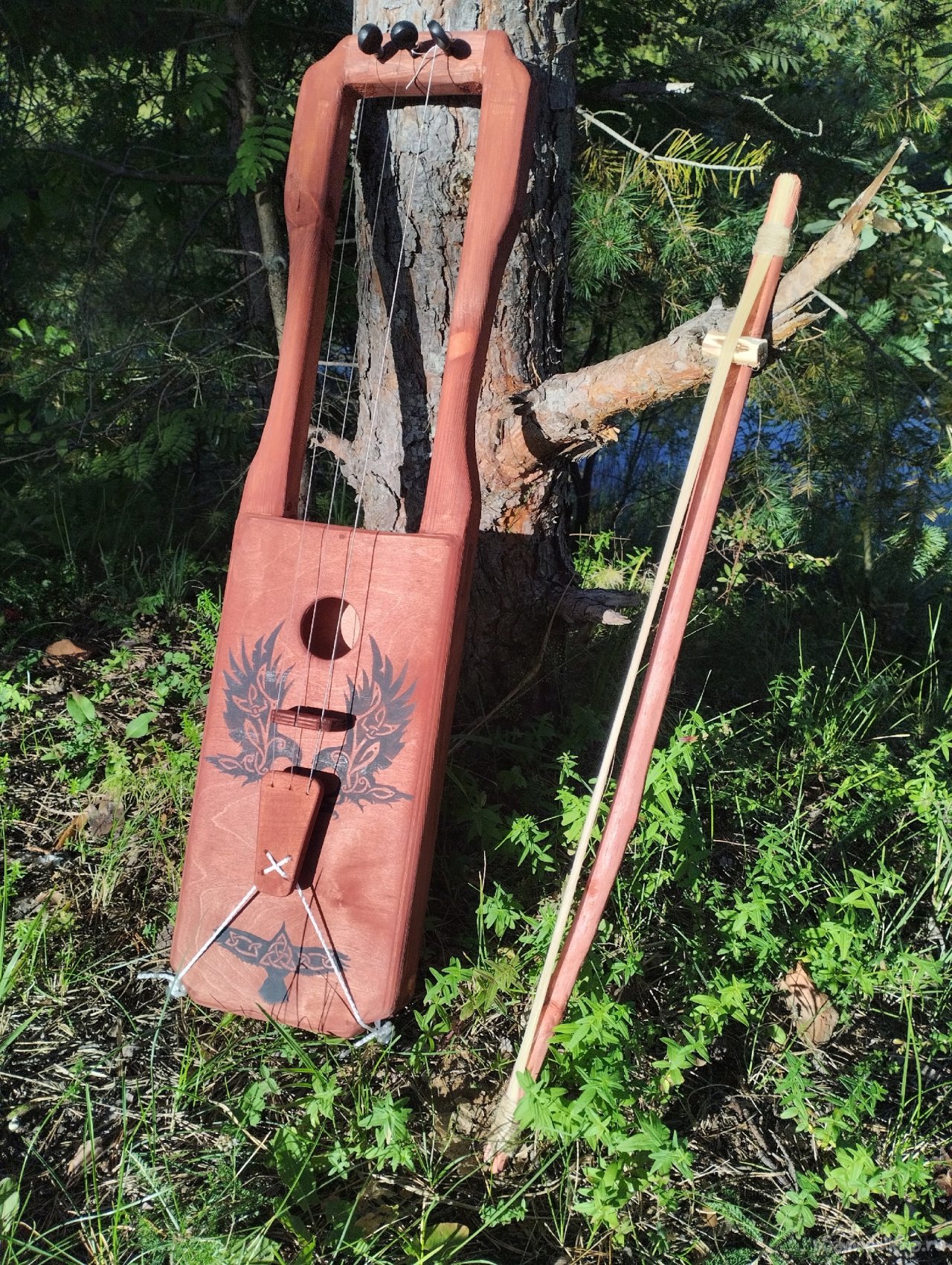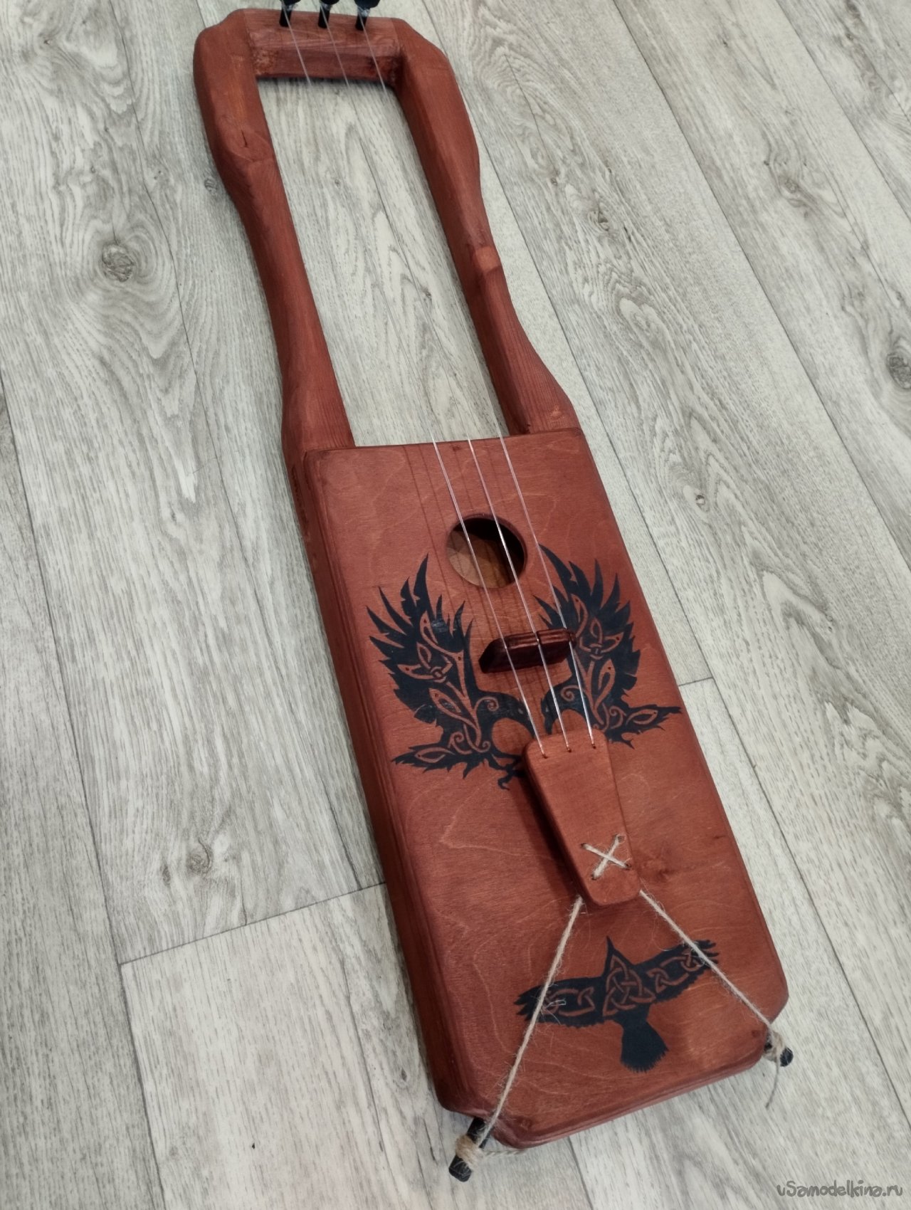 По материалам: бруски 40*40, морилка, акриловые краски, струны - нейлон, конский волос на смычок. Вариантов строя много, но основной как по мне так АДЕ (ля, ре, ми). Спасибо за просмотр.