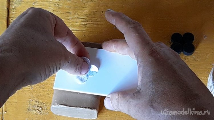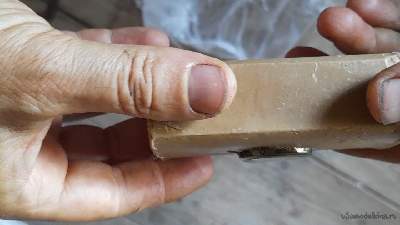 Прикладываю мыло к заготовке и визуально определяю где будет находиться центр расположения магнита.