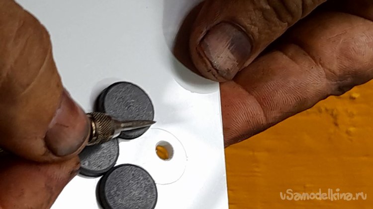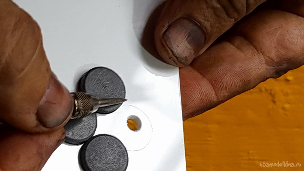 В моем случае диаметр магнитов был больше диаметра самого большого сверла у меня в наличии, поэтому пришлось расширять отверстия под магниты при помощи бормашины и насадки - фреза.