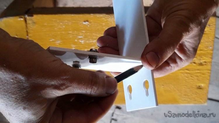 Примеряю как заходит и держится анкерный шуруп в полученных пазах. При необходимости можно пазы обработать напильником для придания более естетического вида.