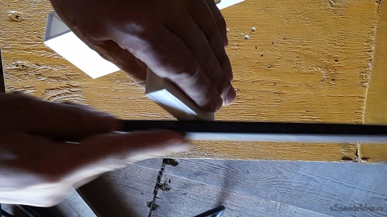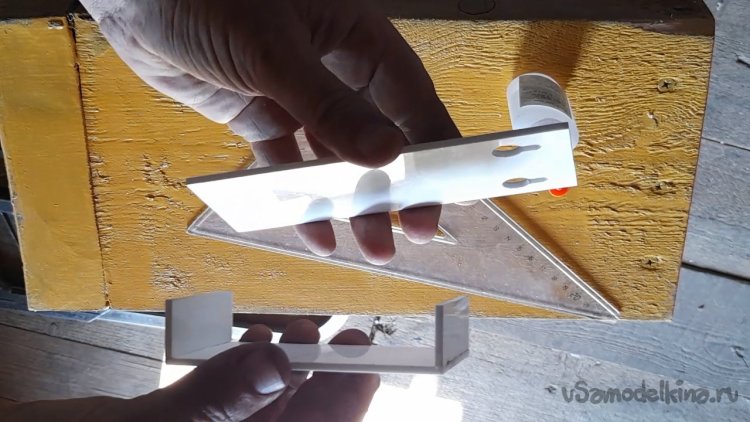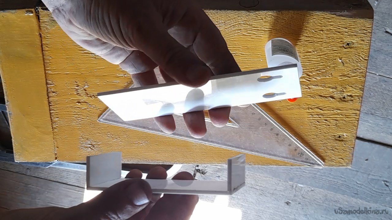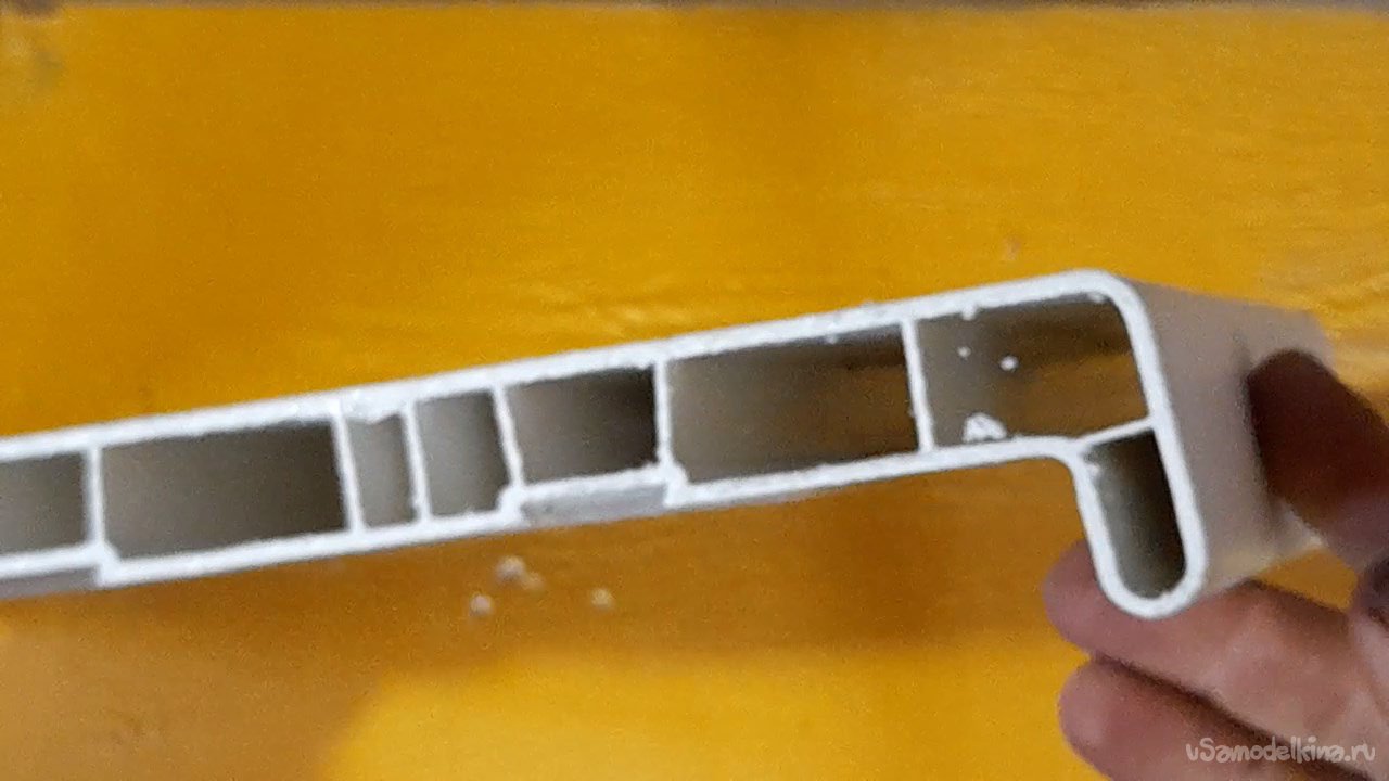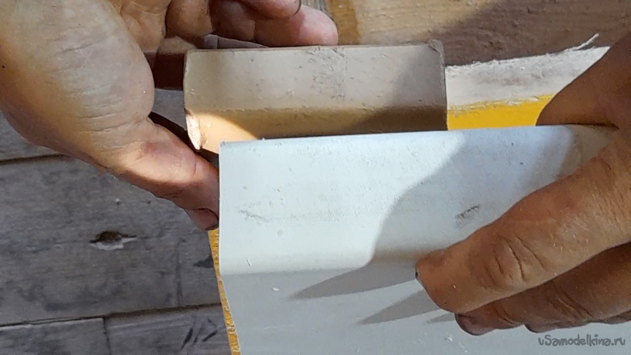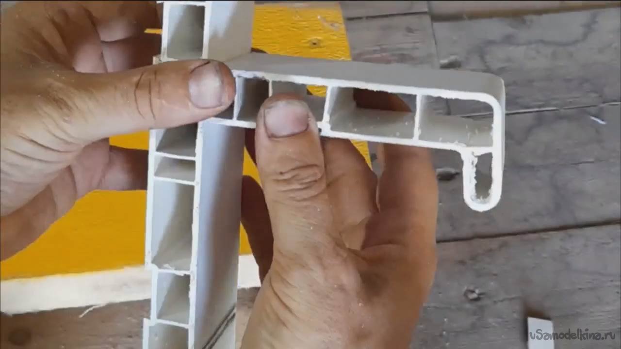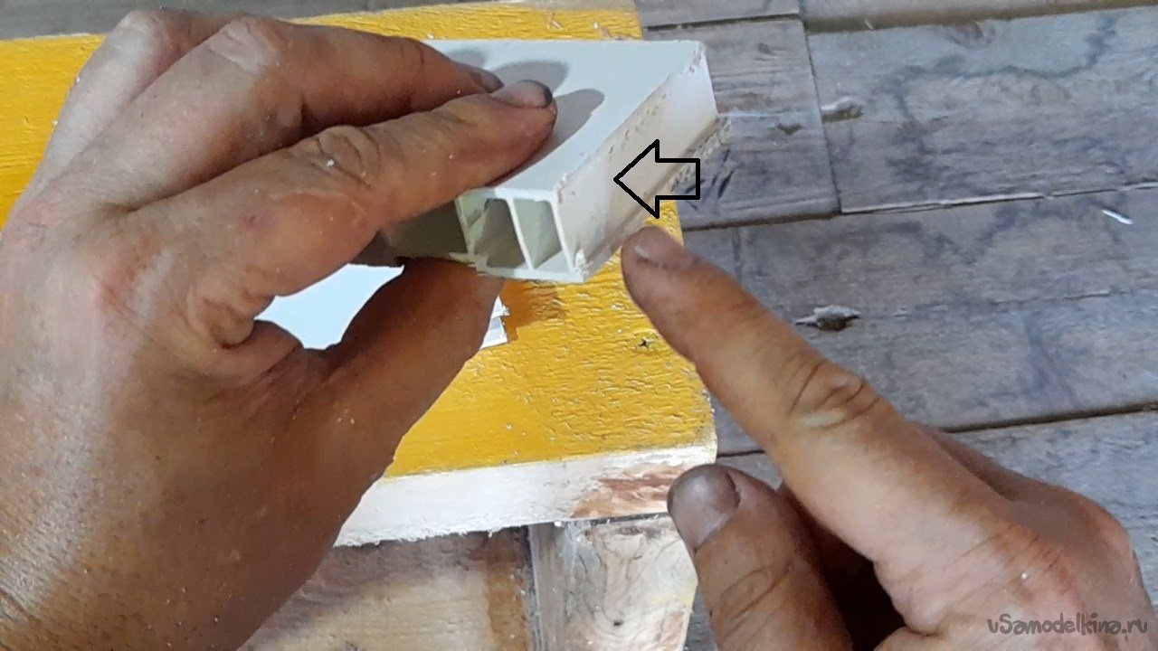 обрезок от пластикового подоконника. Прочерчу ровную линию и отпилю по линии для получения ровного края.