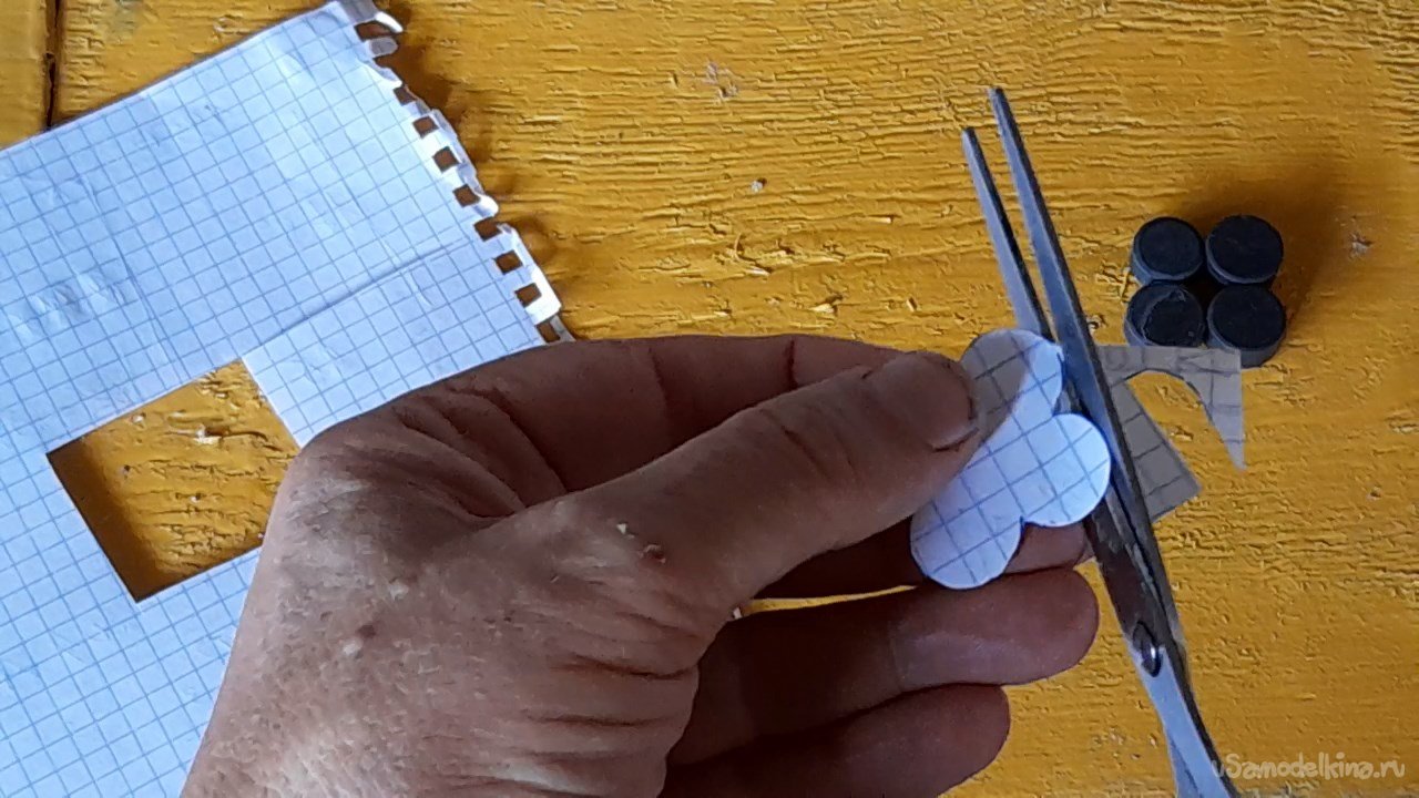 Для начала я вырежу шаблон из бумаги, приложив магниты сложенные вместе по одной плоскости на бумагу.