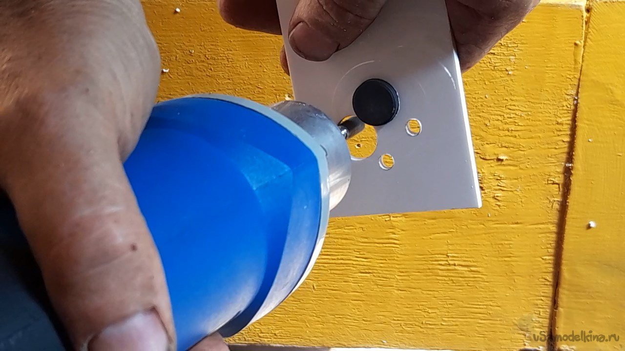 Высверливаю отверстия. И закрепляю магнит к пластиковой заготовке при помощи болтов и гаек с обязательным присутствие между ними шайбы - гровер, при чем крайне желательно чтобы весь крепеж был из нержавеющей стали, так как "купаться" он будет и в воде и в мыле постоянно.