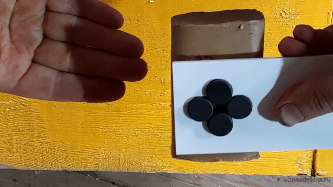 Прикладываю магнит к мылу и в свою очередь это соединение к заготовке номер 1.