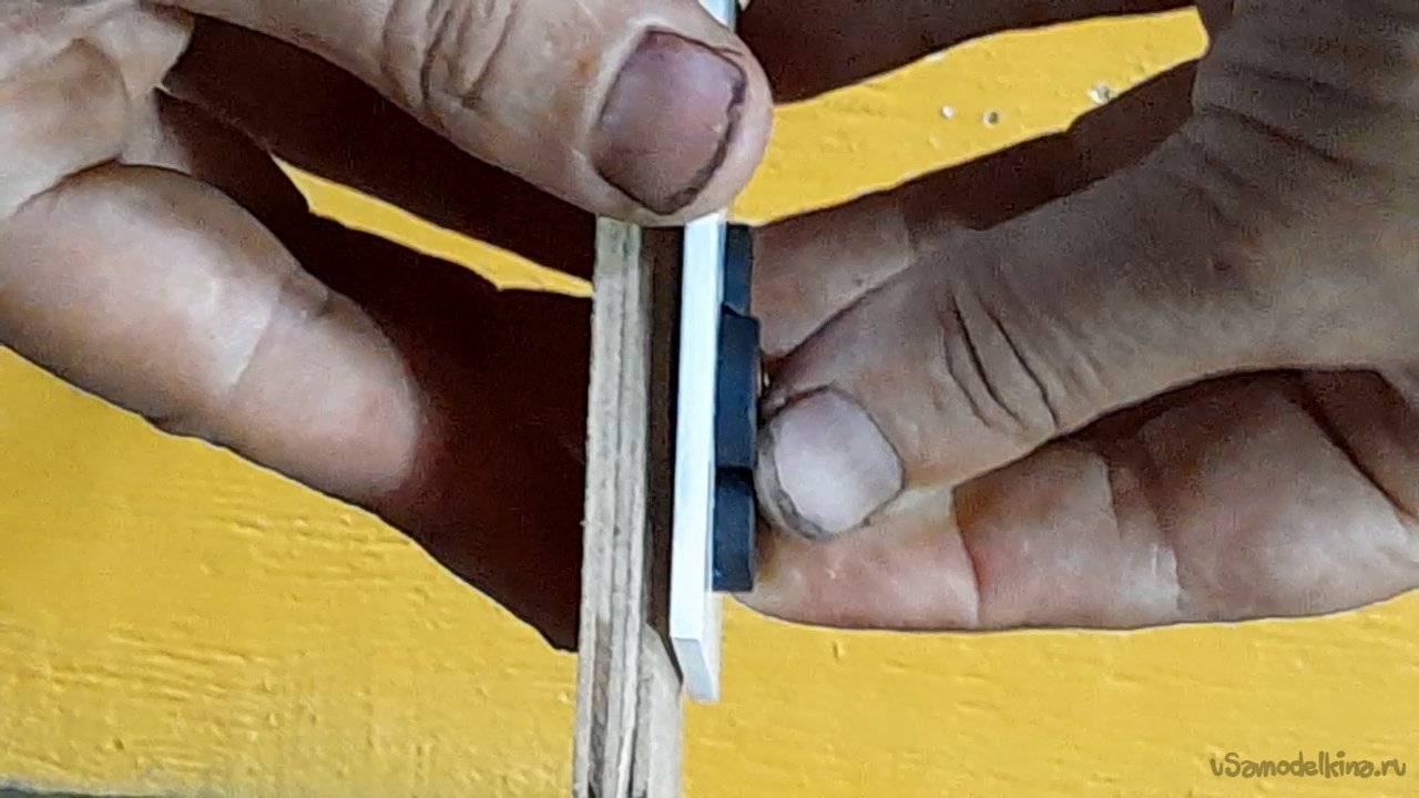 Ну и наконец я приклеиваю заготовку 100 на 60 мм с прикрученным магнитом к склеенной раннее конструкции.