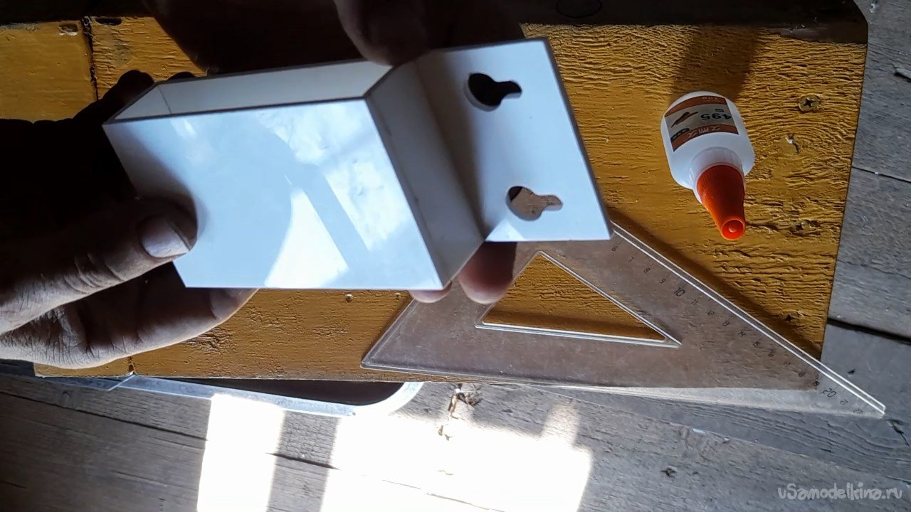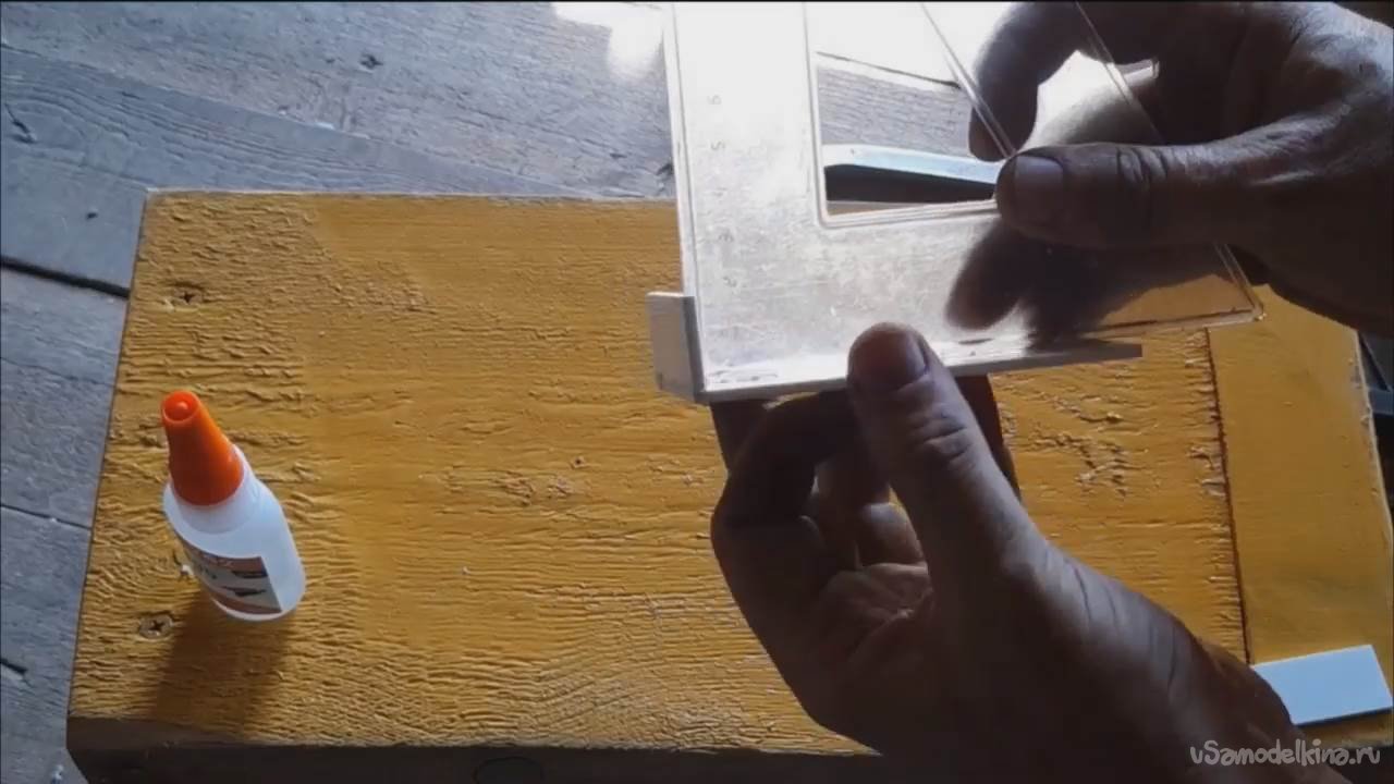 Приклеиваем сначала боковые стенки, а потом я просто приклеил верхнюю крышку по длине с запасом,