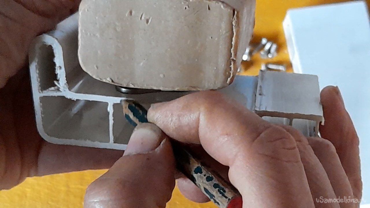 Помечаю карандашом места высверливания под крепеж магнита к заготовке.