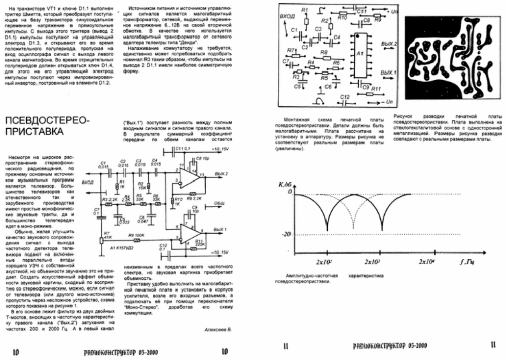 Схема, что ты показал -это противо фазные сигналы с эмиттера и коллектора транзистора, а я говорю про задержку по времени, когда прямой сигнал  итдёт в одно ухо, а задержанный в другое, стереофорния супер! будто на концерте на стадионе fool