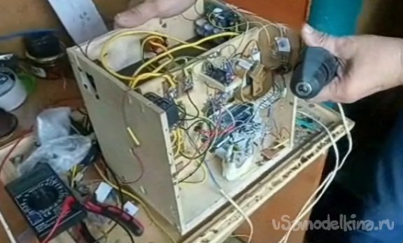 Закончив перенос электроники в корпус шайтан колеса, проверил работу электронных мозгов на двигателе от шуруповерта. Убедившись в правильном исполнении команд, подключил силовые провода на основной двигатель. Даже угадал с правильным вращением вала.