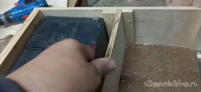 В верхней части корпуса сделал надстройку для контроля оставшегося напряжения, контроллер отключается при двадцати вольтах. На будущее, надо поставить обманку для контроллера на повышайке с фиксированным напряжением двадцать четыре вольта, чтобы избежать неожиданного включения защиты аккумуляторов при движении.