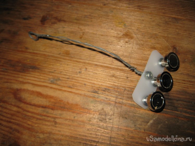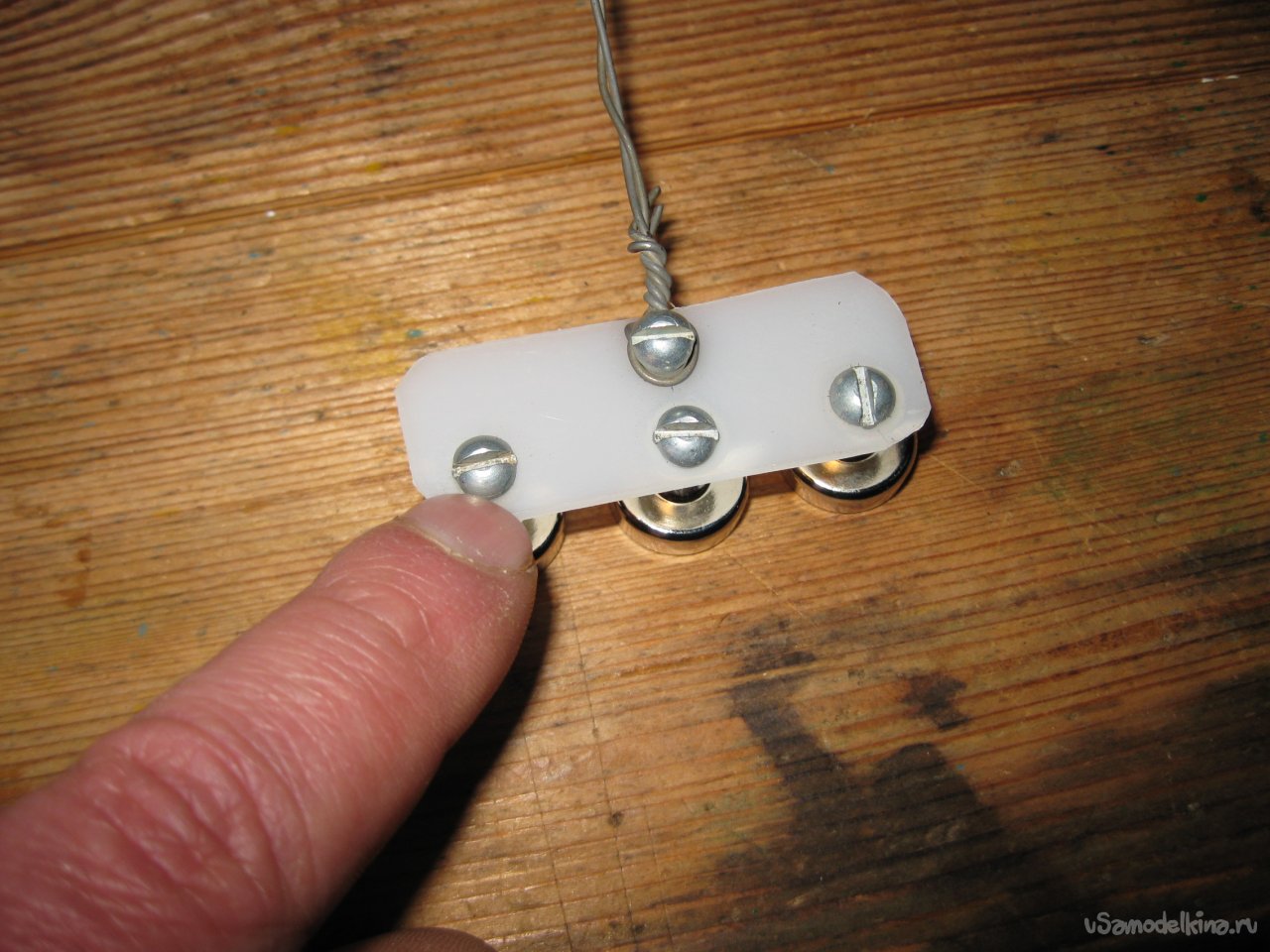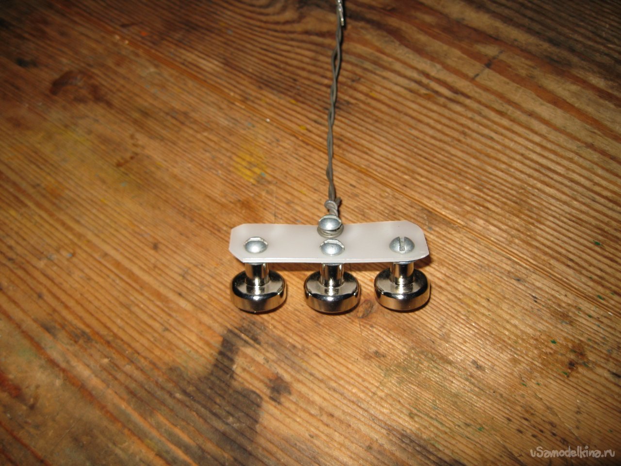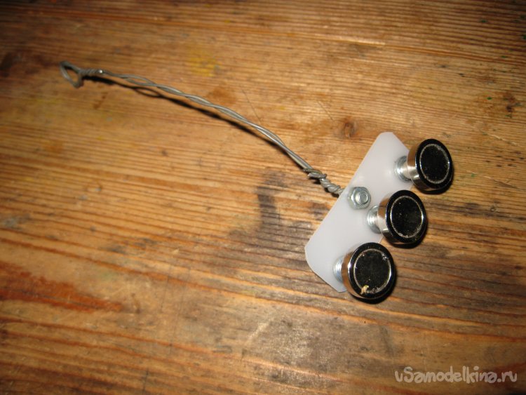При этом проволочный поводок оказался весьма удобен, поскольку его можно изгибать и таким образом, придавать блоку магнитов нужный угол наклона.