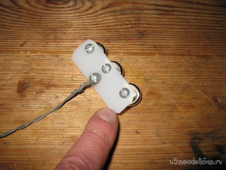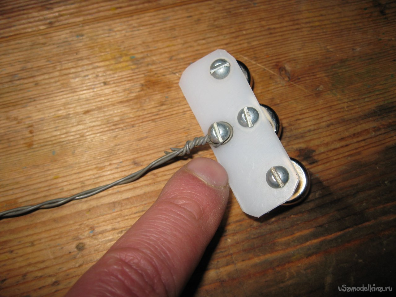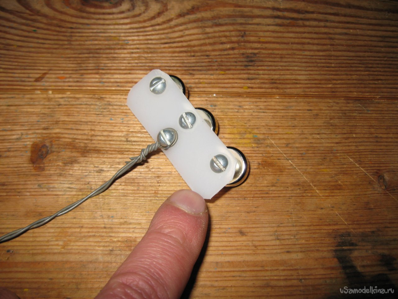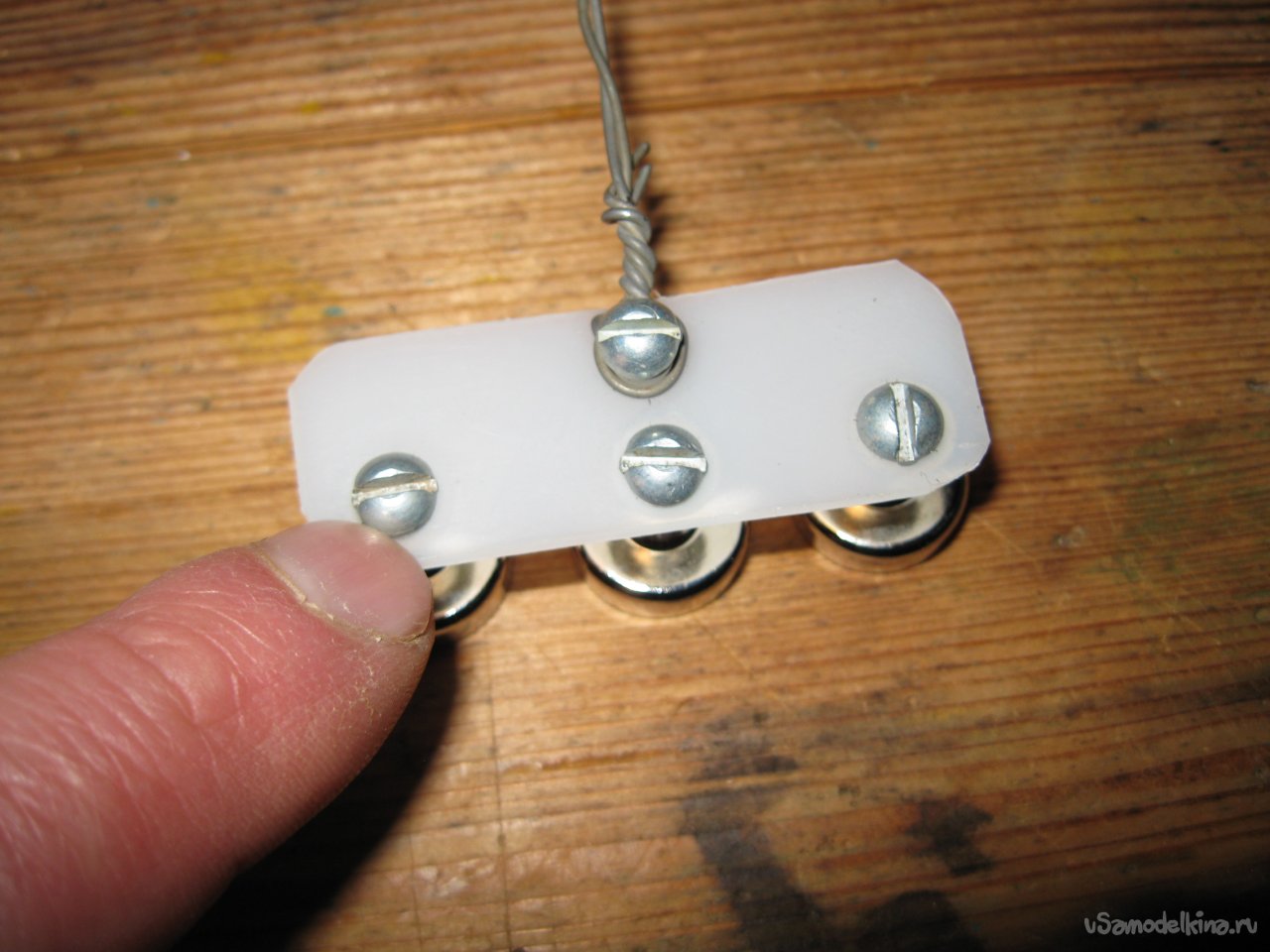 При этом проволочный поводок оказался весьма удобен, поскольку его можно изгибать и таким образом, придавать блоку магнитов нужный угол наклона.