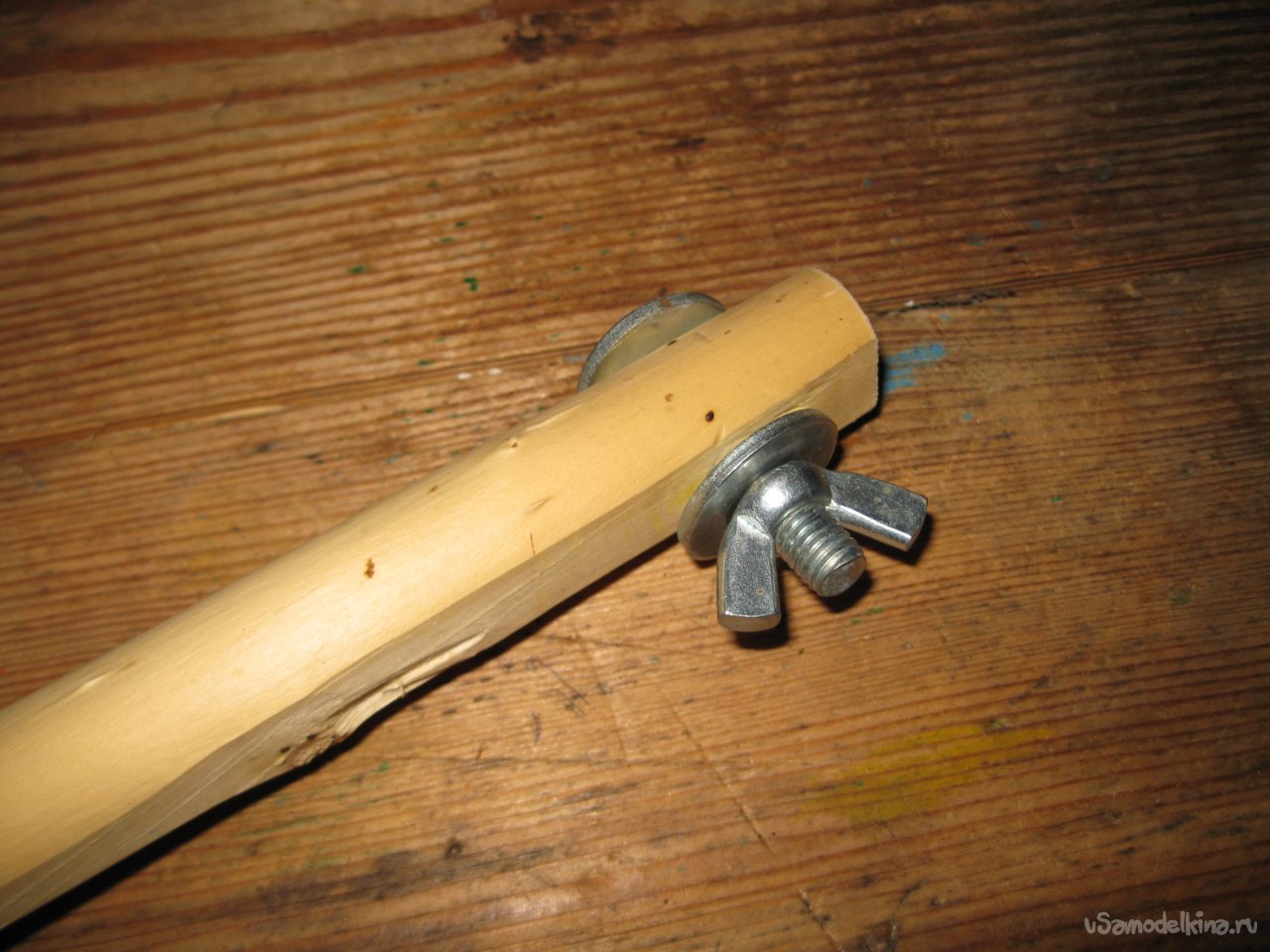 В качестве рукоятки, я взял вот такую свою универсальную рукоятку, сделанную из ветки ветлы.
