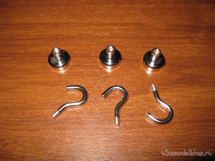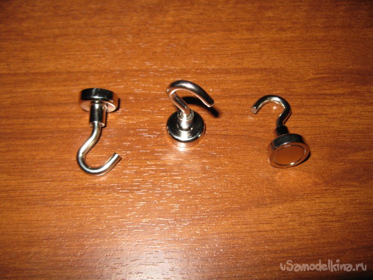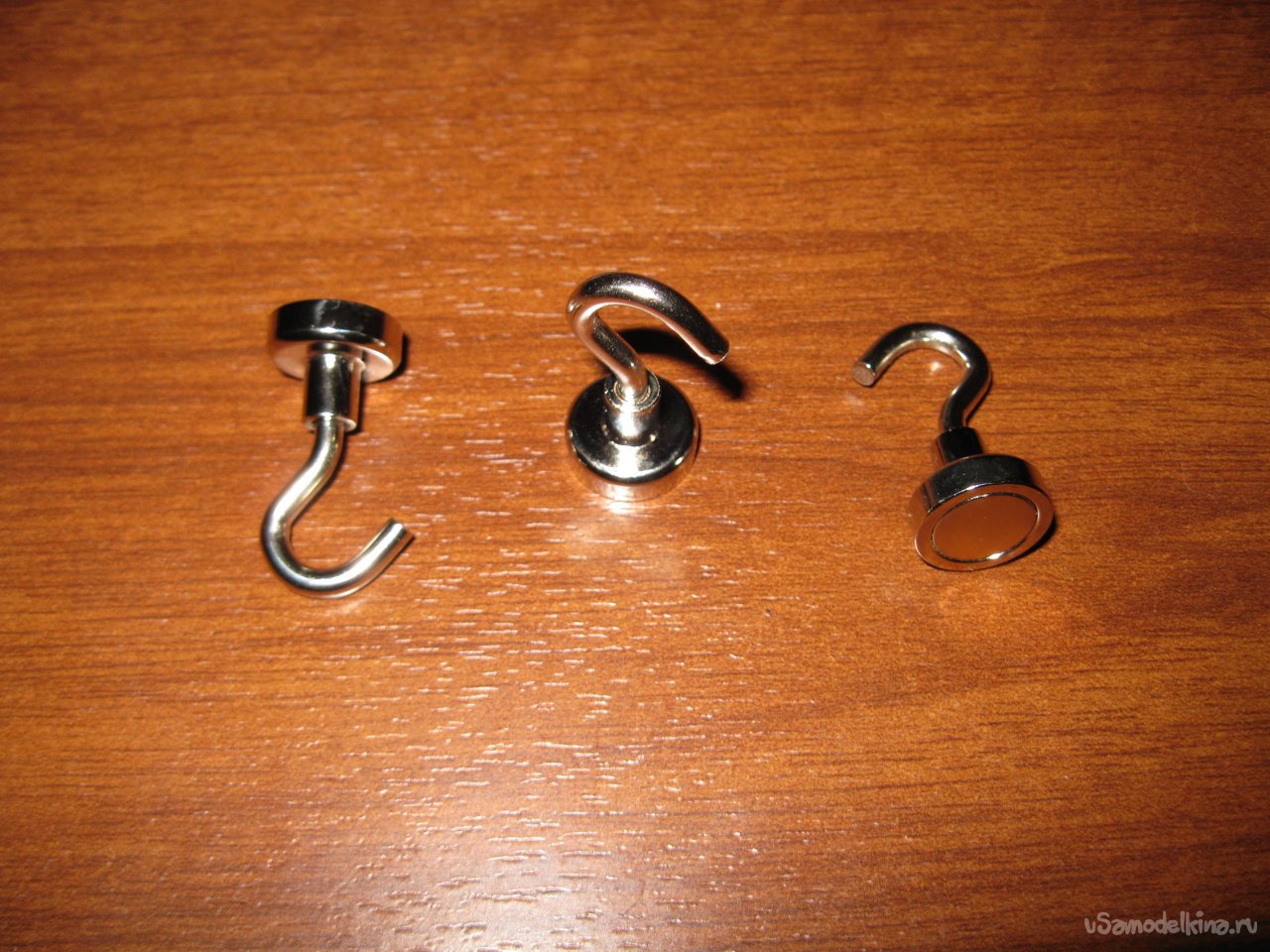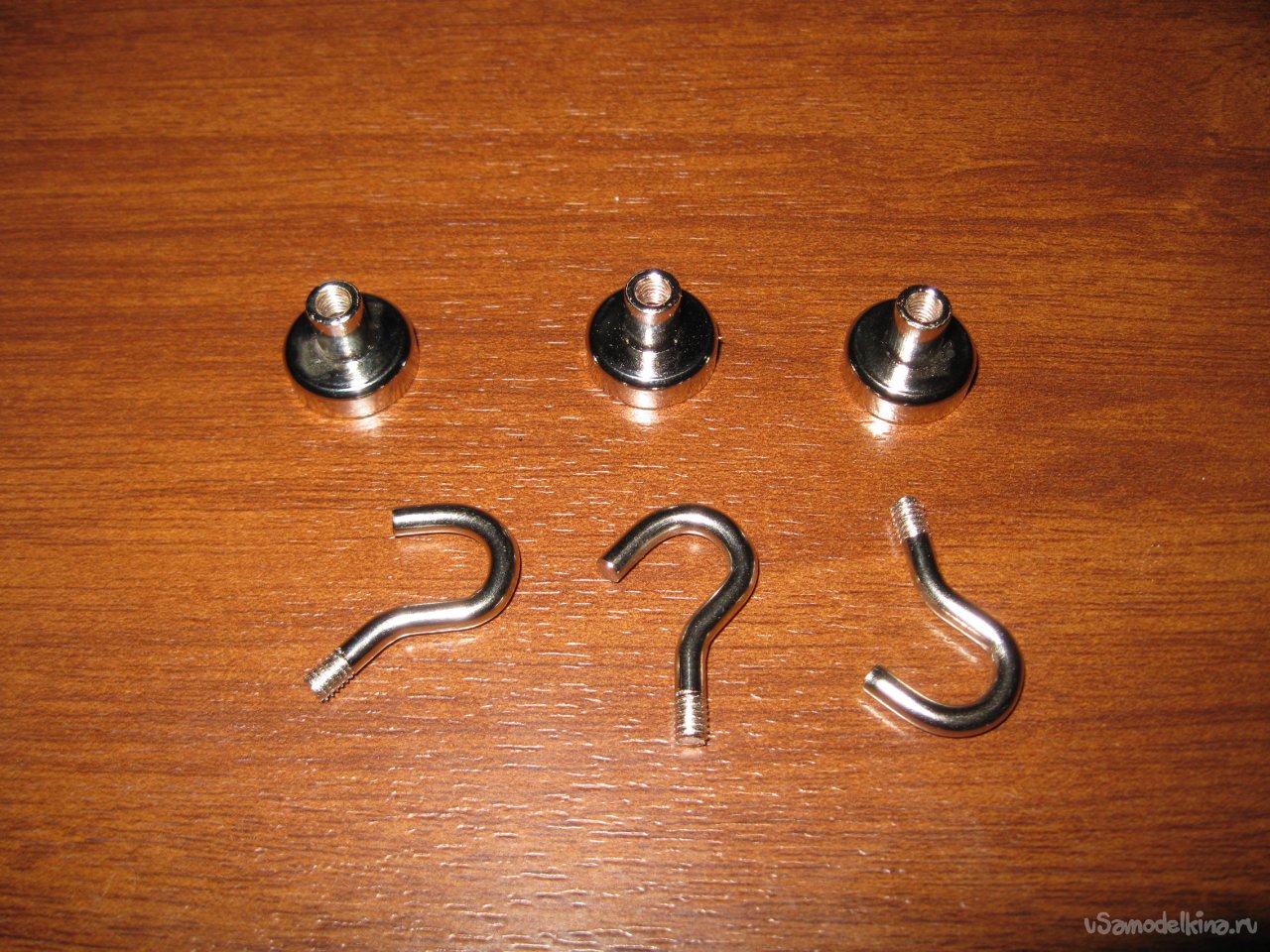 Эти магниты с крючками, но крючки легко можно открутить, поскольку они на резьбе, и, самое главное, что это стандартная резьба М4. Таким образом, эти магниты можно легко закрепить куда угодно при помощи обычных болтиков с резьбой М4.