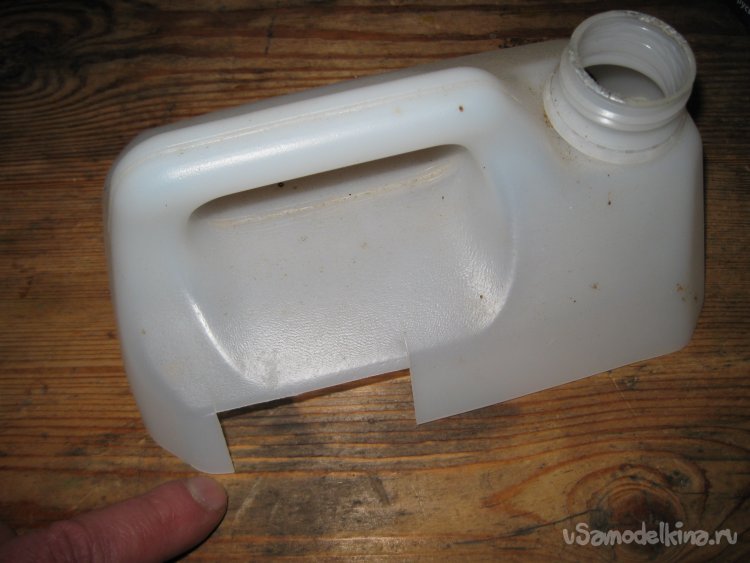 Сначала я вырезал небольшую пластинку из обрезка пластиковой канистры.