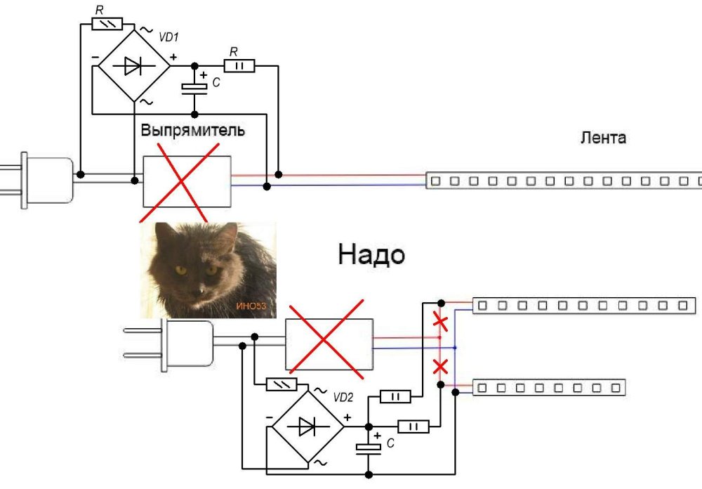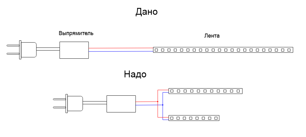 Я в электронике полный ноль. А сейчас возникла задача разделить светодиодную ленту. Не, простую ленту я делил, но эта на 220 в. с выпрямителем. Задача - разделить 5-ти метровую ленту на два куска - 1,5 метра и 1 метр, и подключить к прилагаемому выпрямителю. Я правильно мыслю, или есть некие подводные камни, о которых я не знаю?