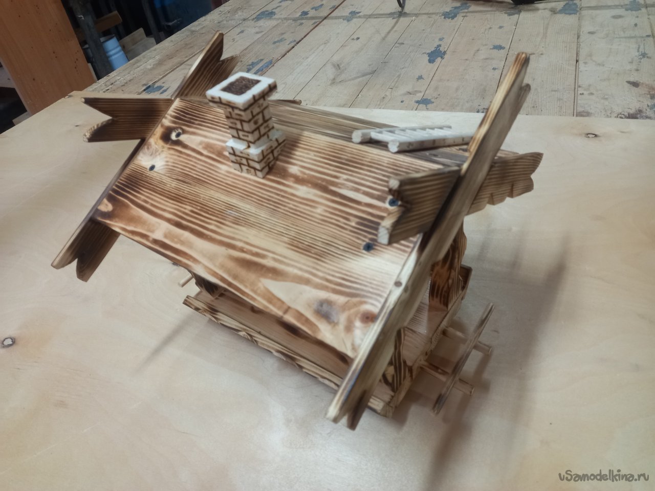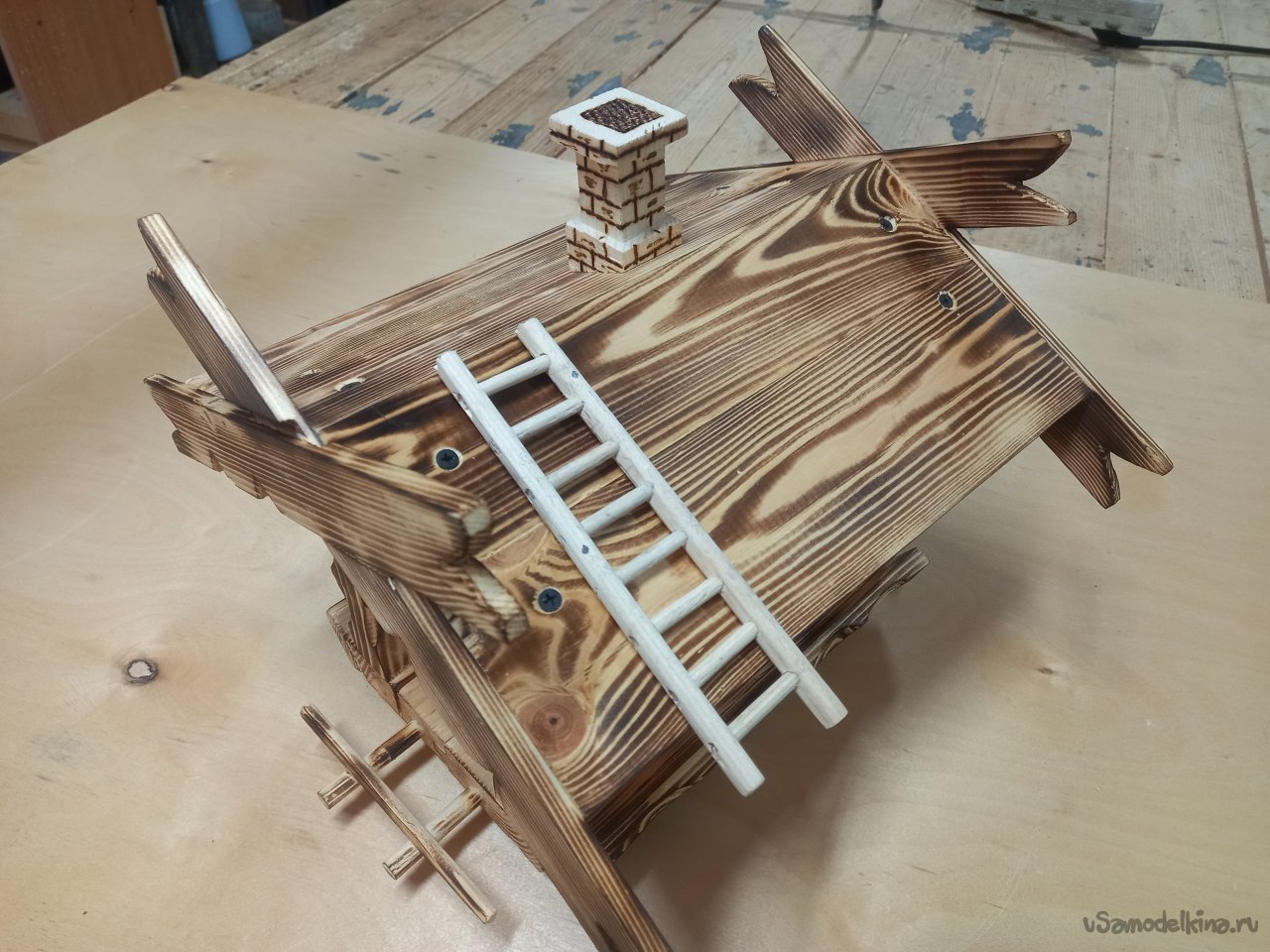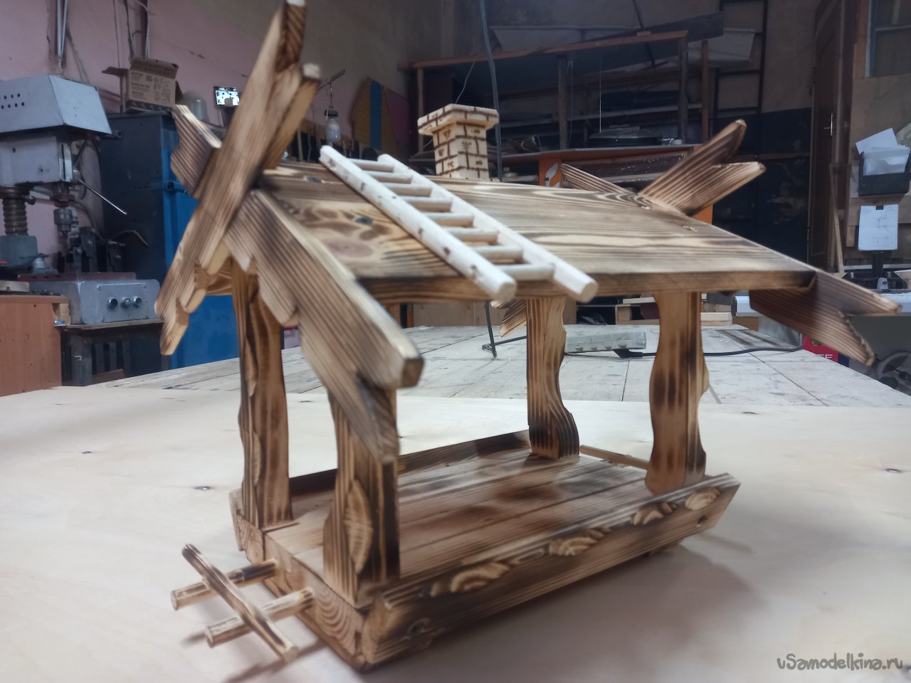 Дело было к вечеру, делать было нечего. Осмотревшись вокруг себя, я обнаружил много отходов после выполненного задания. Обычно, что бы не захламлять рабочее место, все перерабатывалось на дрова для дачи. Но тут вспомнились глазенки подрастающего поколения и меня понесло... Надо чем то порадовать внучат, А что в наше время можно дать детворе? У них все есть. Я вот в их возрасте обруч катал подталкивая его хворостинкой и был счастлив. В общем почесал затылок и перебирая варианты решил сделать кормушку для птичек. Думаю, будут выбегать на улицу корм насыпать в кормушку, а то засиделись у компов.Как делал не фиксировал, не ка невидаль, Думал сляпаю побыстрей да попроще, а подом увлекся. Короче вот, что получилось. Следующий вариант буду делать обдуманно.