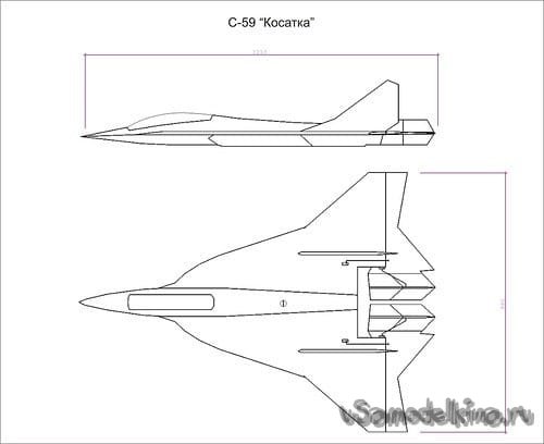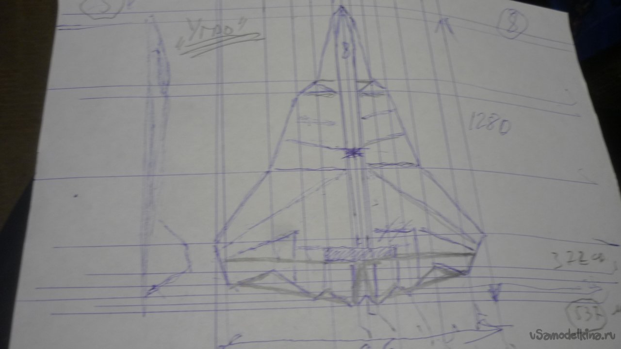 На основе «чертежа» Сергея Александрова, я сделал рисунок на бумаге А4 , выбрал масштаб и проставил размеры. Я постарался полностью сохранить неповторимые очертания, силуэт авиамодели «Dominator» AL-609.