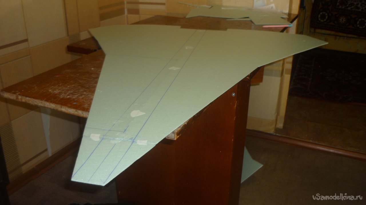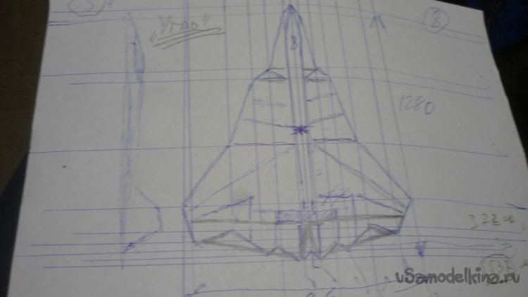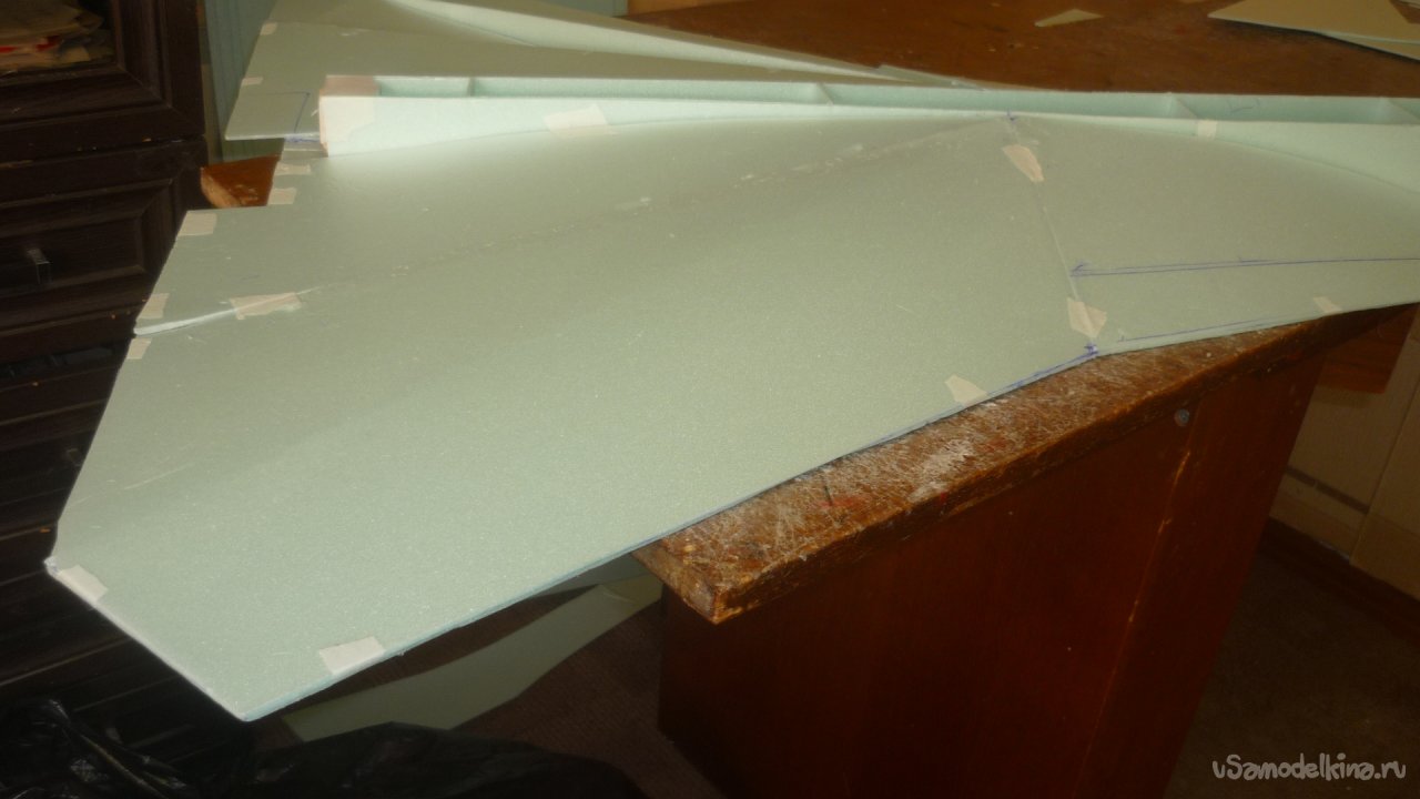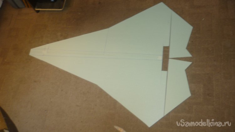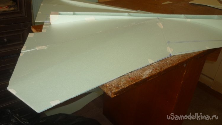 Прежде всего нужно разметить и вырезать детали осноыной несущей поверхности - внешней обшивки модели с нижней стороны.