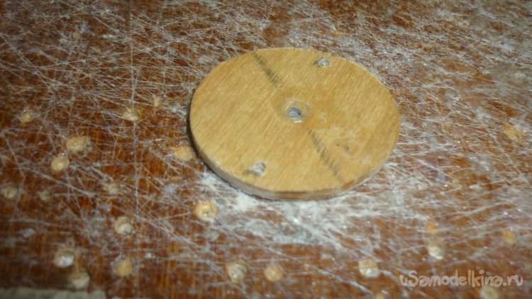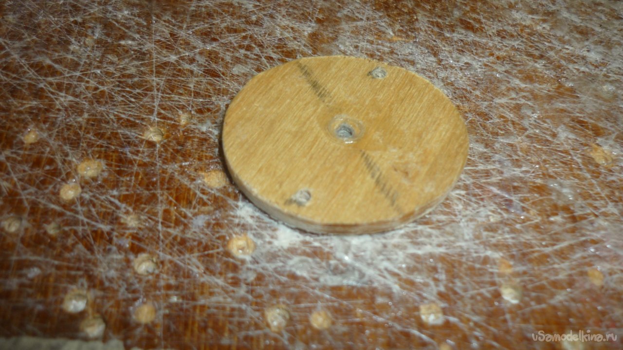 Из 3 мм. фанеры вырезал кружочек и приклеил на основу из утеплителя.