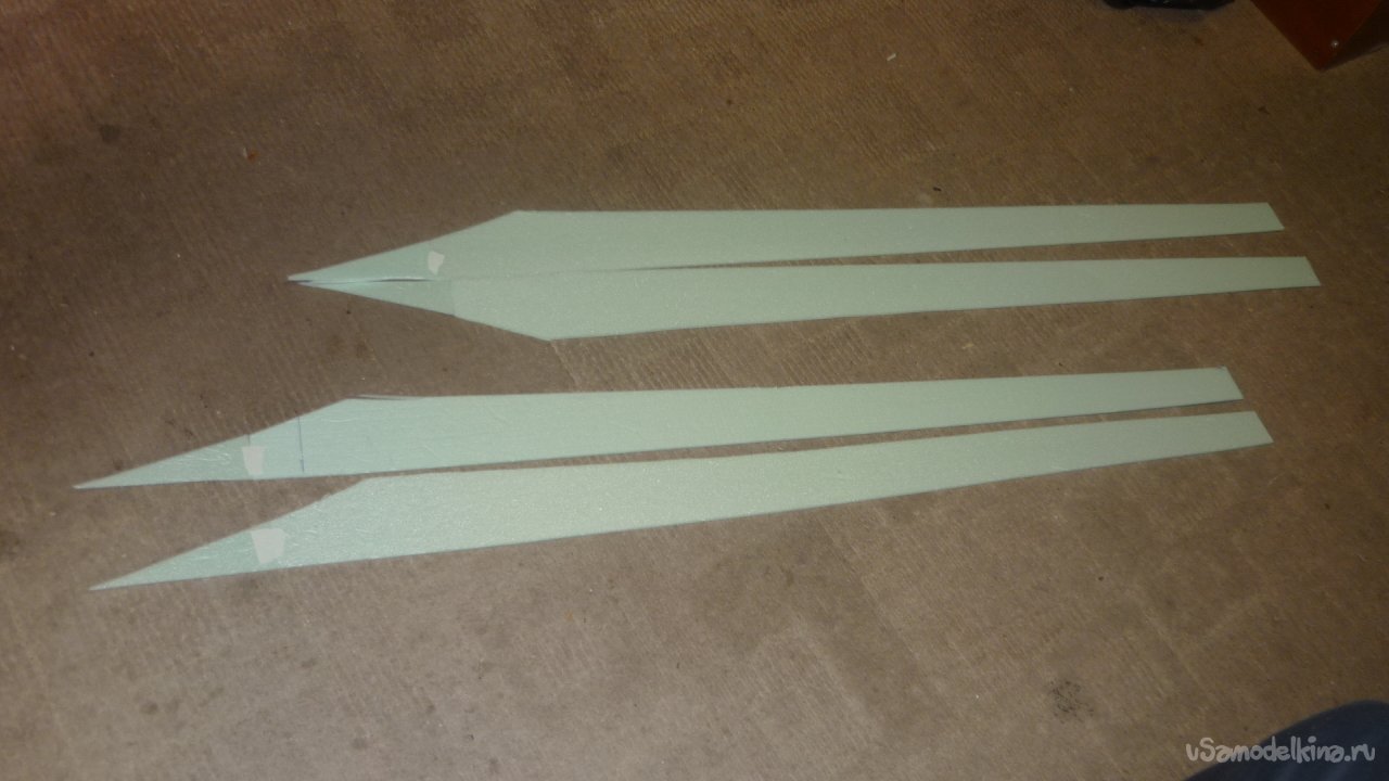 Вырезал заготовки для килей, примерил.