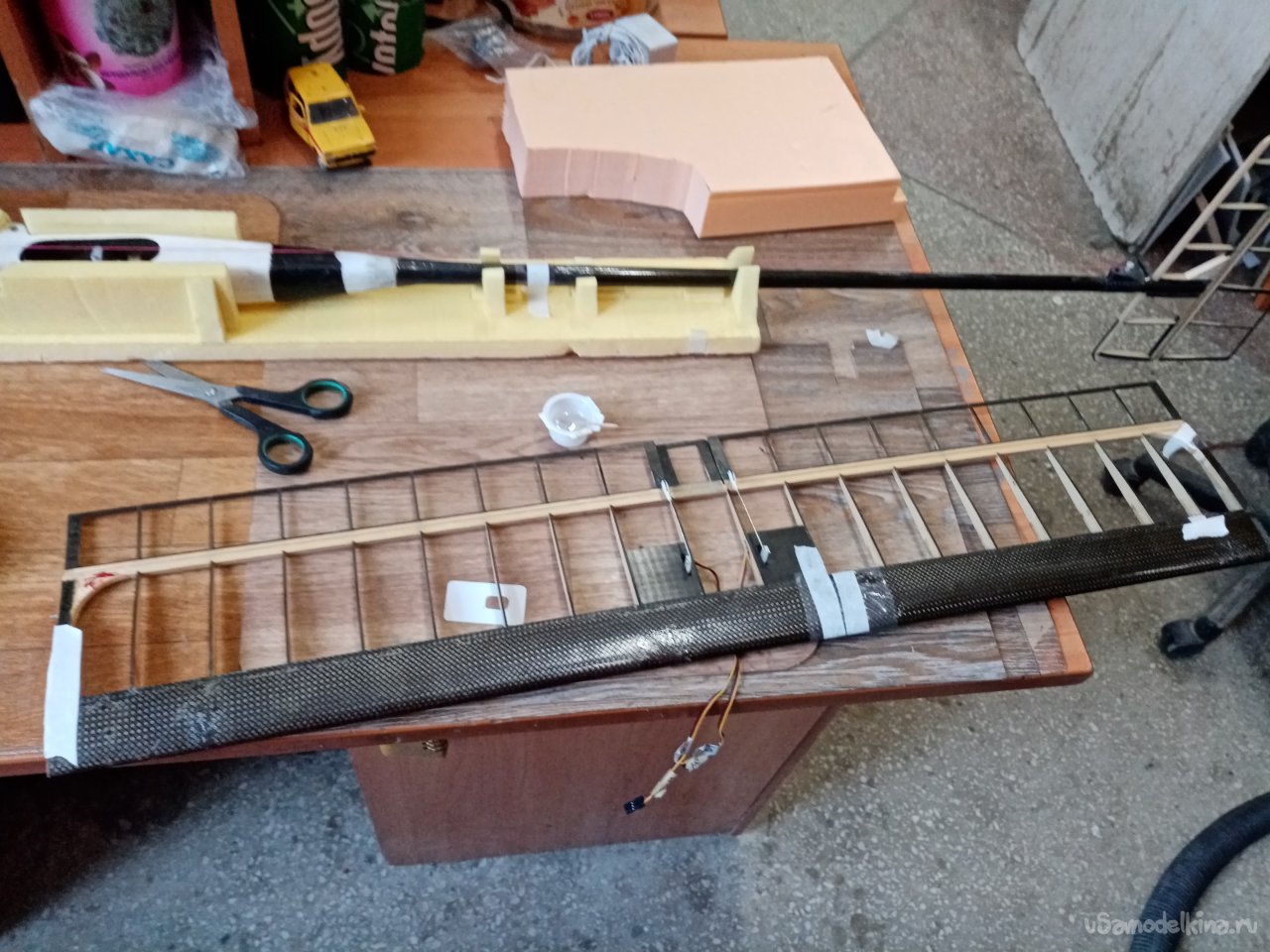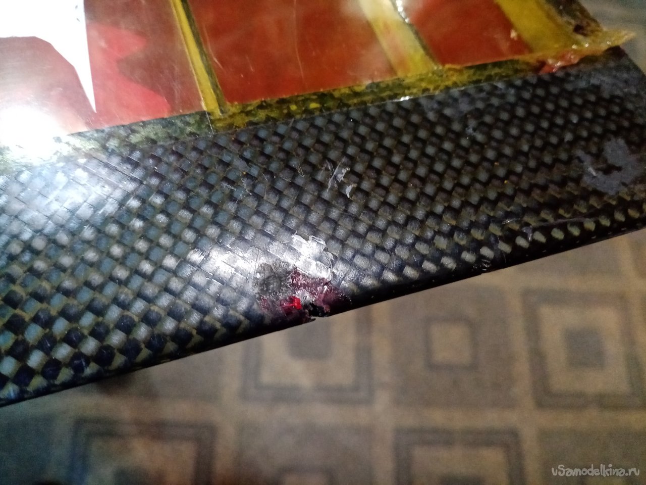 После ремонта передней кромки, осторожно снимаю обшивку крыла. Заклеиваю некоторые трещины в каркасе и передней кромке.