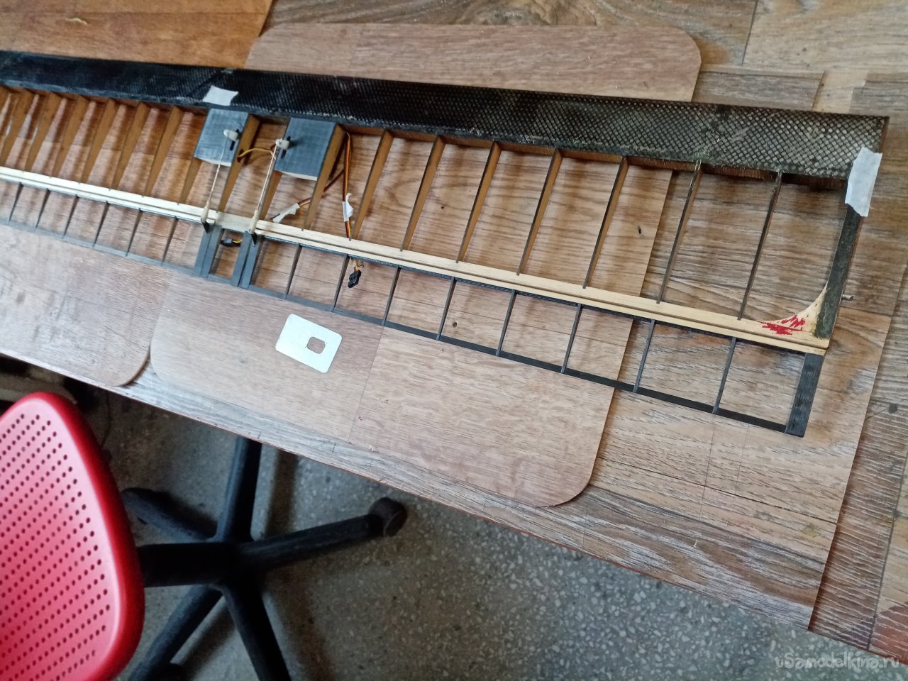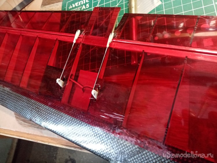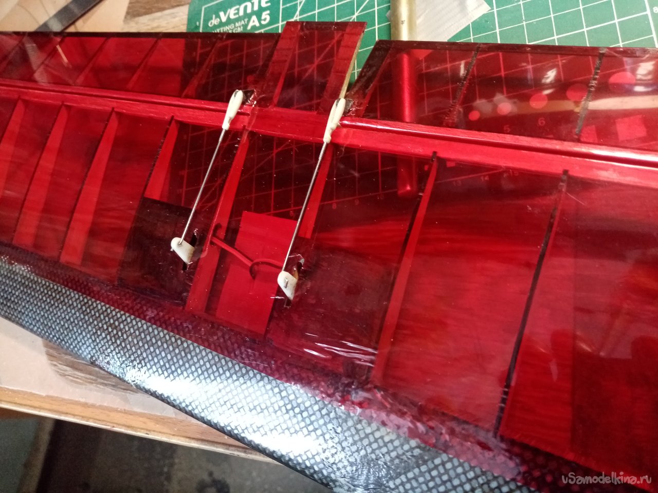 Устанавливаю на место тяги флаперонов, ремонт крыла окончен.