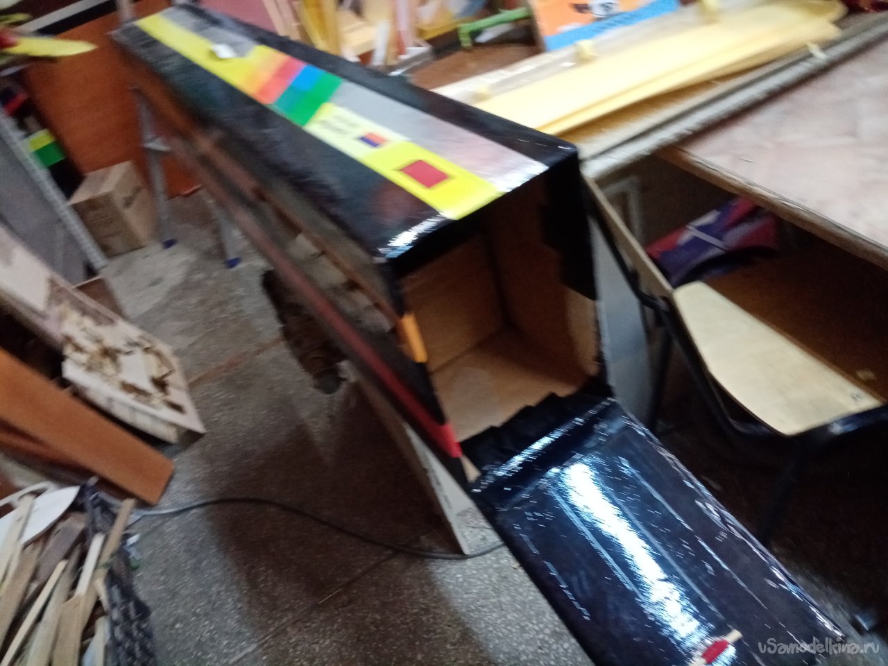После ремонта установил тяги внутри хвостовой балки, соединив все воедино. Упирался долго, танцы с бубном и ненормативная лексика помогали процессу по мере сил. Наконец все трудности позади. Планер полностью восстановлен. Все работает. Можно положить в коробочку в ожидании летних стартов. На каркасно-пленочном самолетике зимой летать невозможно. От холода поведет крылья и обшивку. Но своих пенопластовых планерах летаю вовсю. Им искажения формы не грозят.