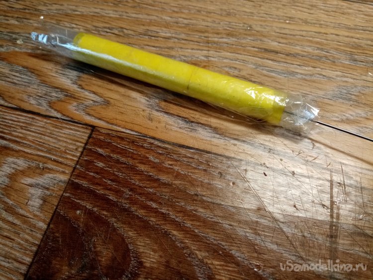Развожу микрончик смолы и склеиваю тяги установив внутри прутики. Расщепленные части обмотал ниткой.