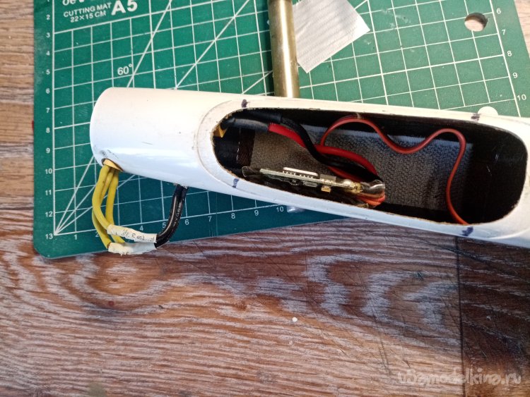 На вторые сутки снимаю готовый цилиндрик с оправки. Примеряю. Расчет оказался точный. С некоторым натягом вставился внутрь хвостовой балки.